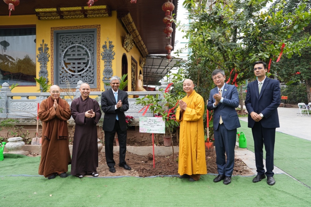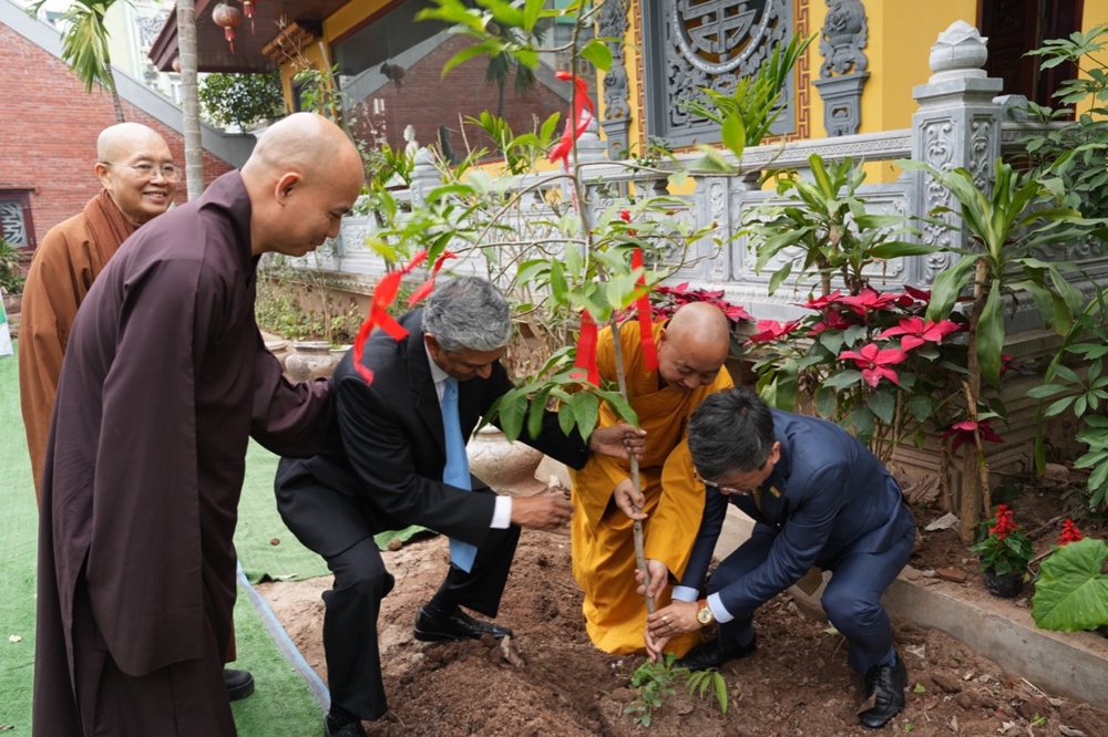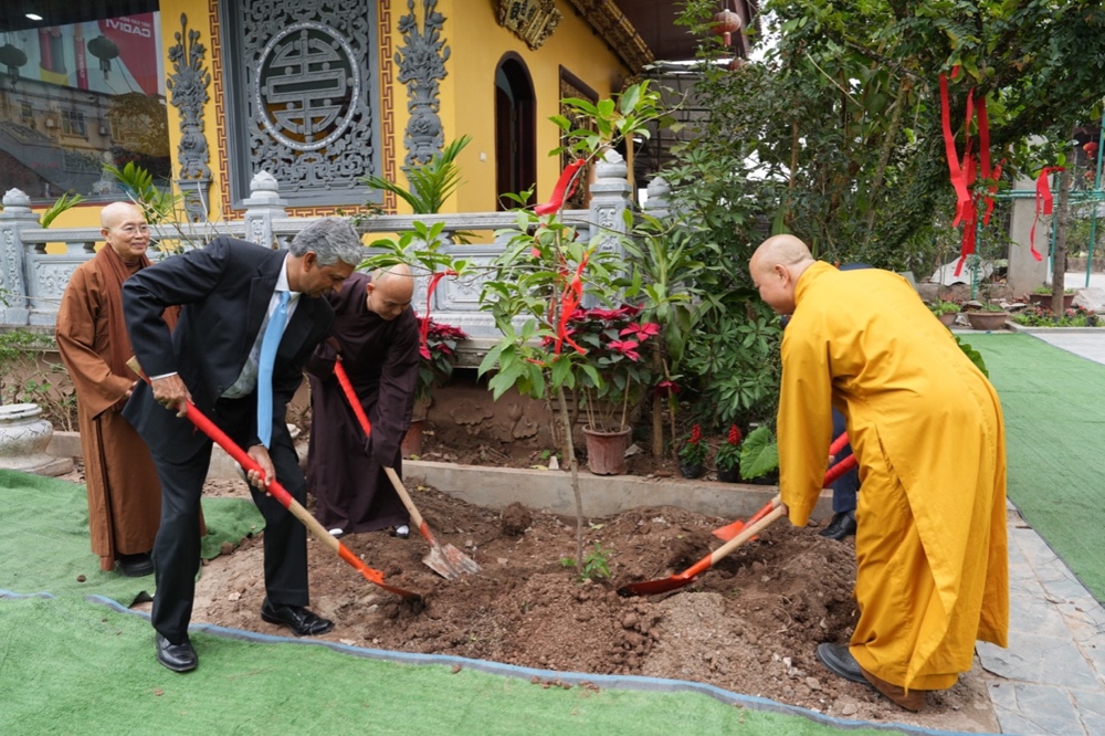 Trong khuôn khổ chuyến thăm, các đại biểu đã cùng nhau trồng cây lưu niệm tại khuôn viên chùa Pháp Vân. Cây xanh được trồng không chỉ mang ý nghĩa sinh thái, mà còn là biểu tượng sâu sắc cho tình hữu nghị bền chặt, sự gắn bó lâu dài và khát vọng hợp tác, phát triển hòa bình giữa Việt Nam và Ấn Độ trên nhiều lĩnh vực, trong đó có văn hóa, giáo dục và Phật giáo.