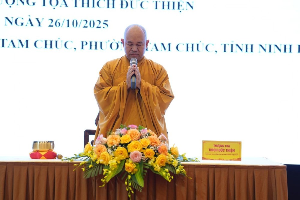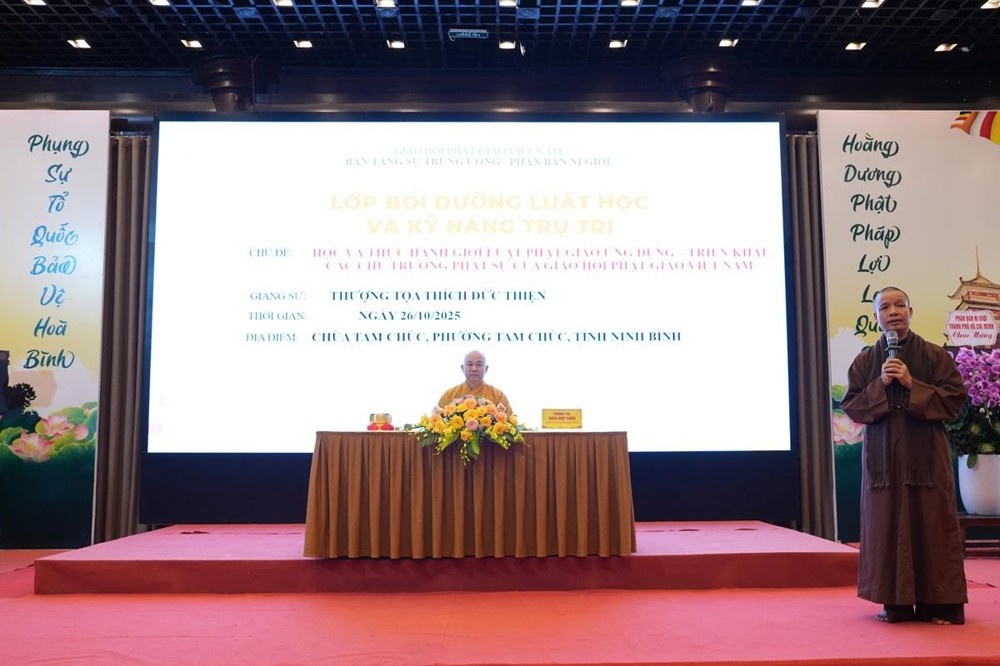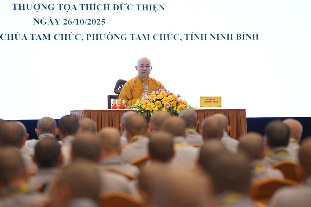 PSO - Sáng ngày 26/10/2025, trong khuôn khổ Khóa Bồi dưỡng Luật học và Kỹ năng Trụ trì dành cho chư Ni tại chùa Tam Chúc (tỉnh Ninh Bình), nhận lời thỉnh mời của Ban tổ chức, Thượng tọa Thích Đức Thiện – Phó Chủ tịch kiêm Tổng Thư ký Hội đồng Trị sự Giáo hội Phật giáo Việt Nam (GHPGVN) đã quang lâm và có thời pháp chia sẻ với chủ đề: “Học và Thực hành giới luật Phật giáo ứng dụng – Triển khai các chủ trương Phật sự của GHPGVN".