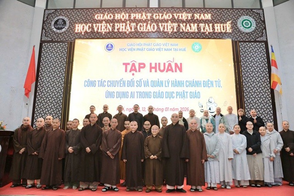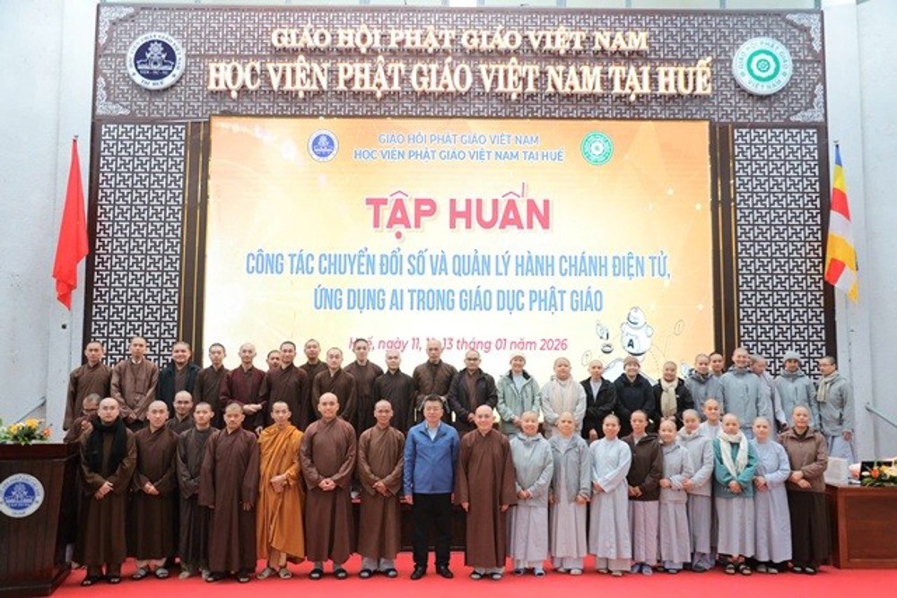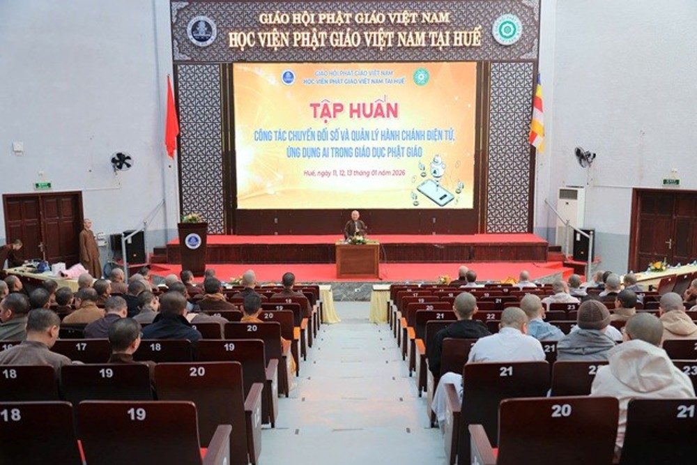 Trong 03 ngày từ 11-13/1/2026, tại Học viện Phật giáo Việt Nam tại Huế (phường An Cựu, thành phố Huế), Tăng Ni sinh các khóa đã tham dự khóa tập huấn công tác chuyển đổi số và quản lý hành chánh điện tử, ứng dụng AI trong giáo dục Phật giáo.