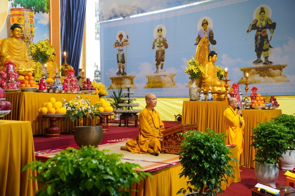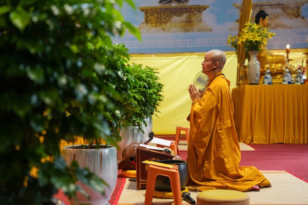 Thượng tọa cầu nguyện Phật pháp hưng long, quốc thái dân an, đạo tâm kiên cố, chúng sinh an lạc.