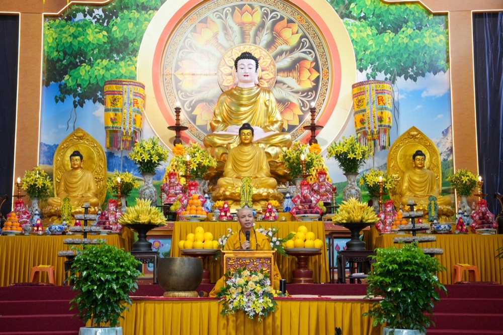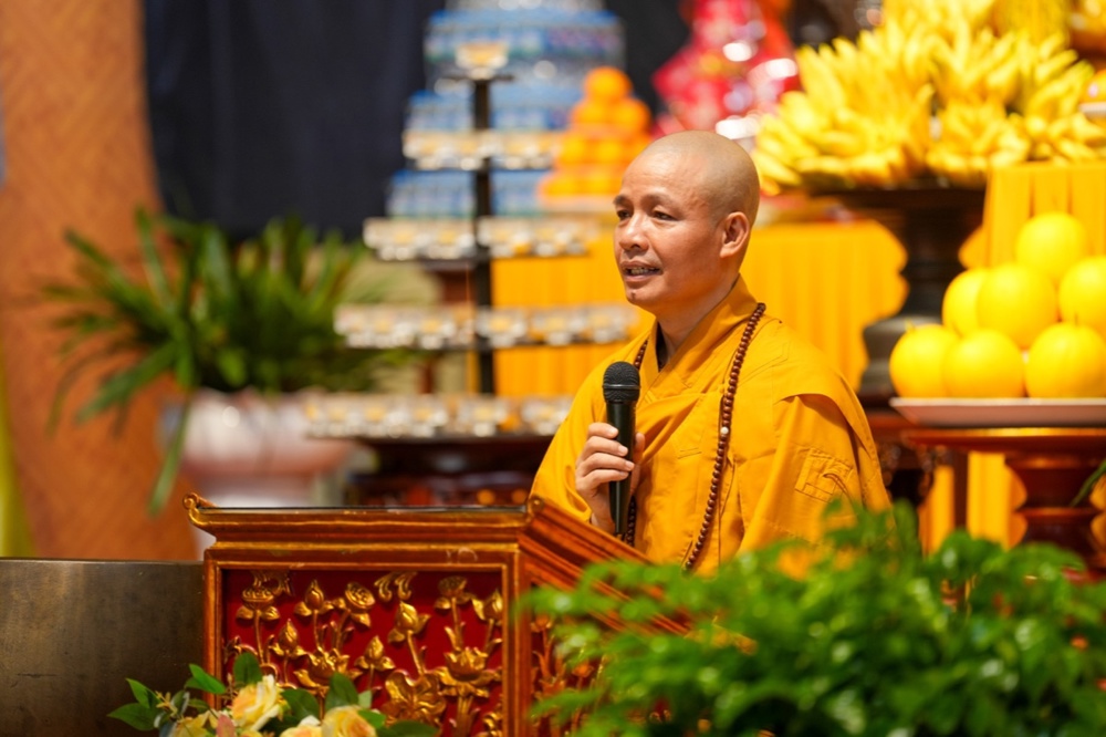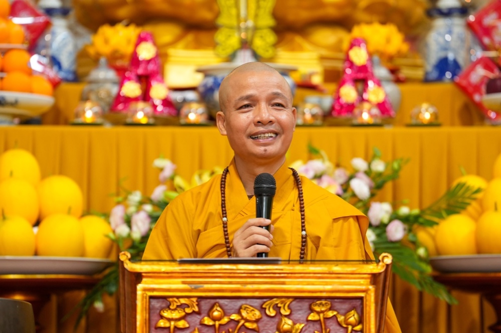 Ngài giảng rõ sự khác biệt giữa “phúc đức” và “công đức.” Phúc đức là kết quả của các việc thiện như bố thí, cúng dường, giúp đỡ chúng sinh đem lại an vui, thuận lợi trong đời sống hiện tại. Công đức là kết quả của việc hành trì và truyền bá Phật pháp, giúp mình và người cùng giác ngộ. Đây là phúc báu vượt ngoài vật chất, dẫn đến giải thoát tâm linh. Thượng tọa khuyến khích đại chúng tu phúc phải đi đôi với tu tuệ, vừa làm lành giúp đời, vừa tinh tiến học đạo, hành đạo.
