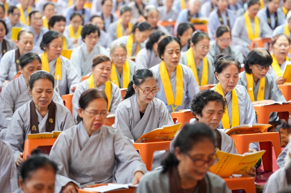 Tiếp nối bài giảng, Thượng tọa chia sẻ rằng tụng kinh là để thấu hiểu rõ lời Phật dạy. Đại chúng tụng kinh với mục đích để thấu hiểu lời Phật dạy từ đó áp dụng vào thực tiễn. Thượng tọa nhấn mạnh, tụng kinh không cốt ở số lần đọc, mà ở sự chuyên tâm và hiểu nghĩa. Tâm còn mê muội, bị tham sân si đố kỵ chi phối, thân ở đạo tràng nhưng ý nghĩ vẫn vọng động, thì việc tụng kinh chỉ còn là hình thức. Tụng kinh đúng nghĩa là miệng đọc – tai nghe – tâm hiểu – thân hành, để giáo pháp trở thành hơi thở sống trong từng việc làm.