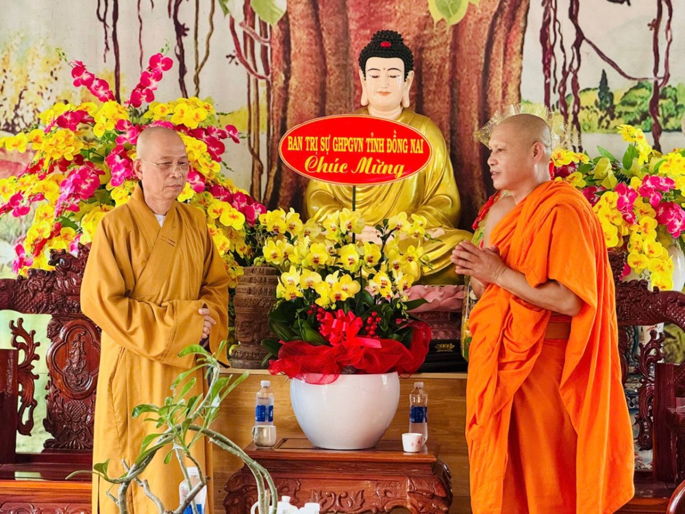Đáp lời phái đoàn, Thượng tọa Thích Pháp Quyền đã bày tỏ niềm xúc động và tri ân sâu sắc trước sự quan tâm, trợ duyên của Thường trực Ban Trị sự tỉnh Đồng Nai đã không quản ngại đường xá quang lâm về tự viện trong ngày lễ trọng đại này.