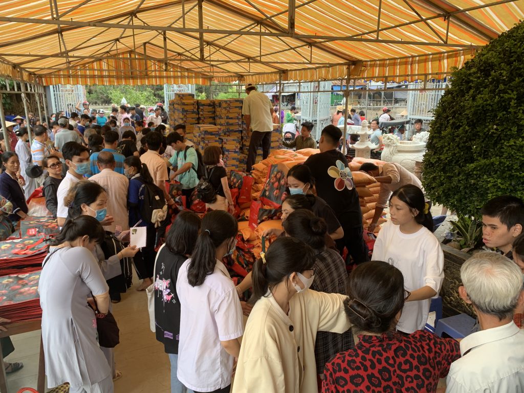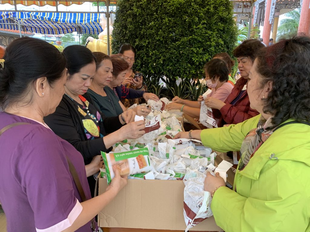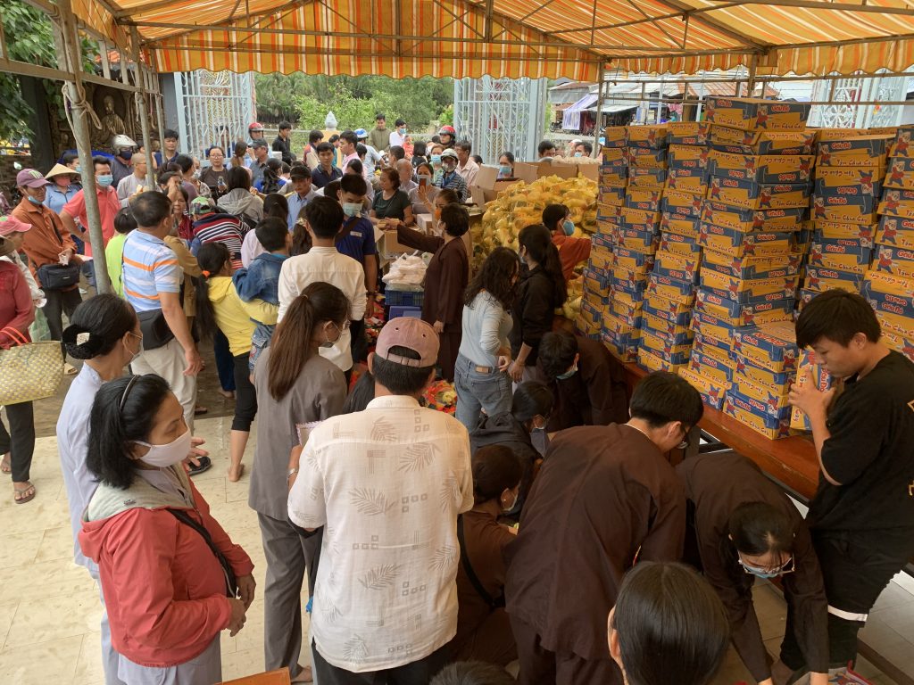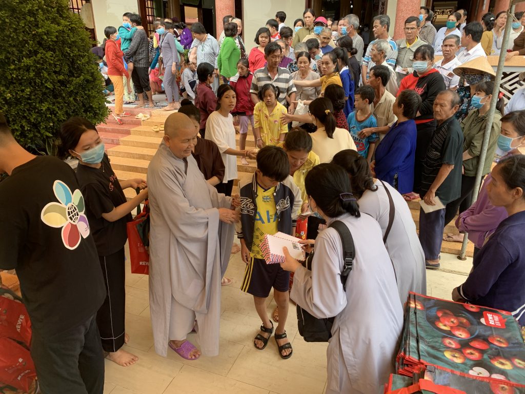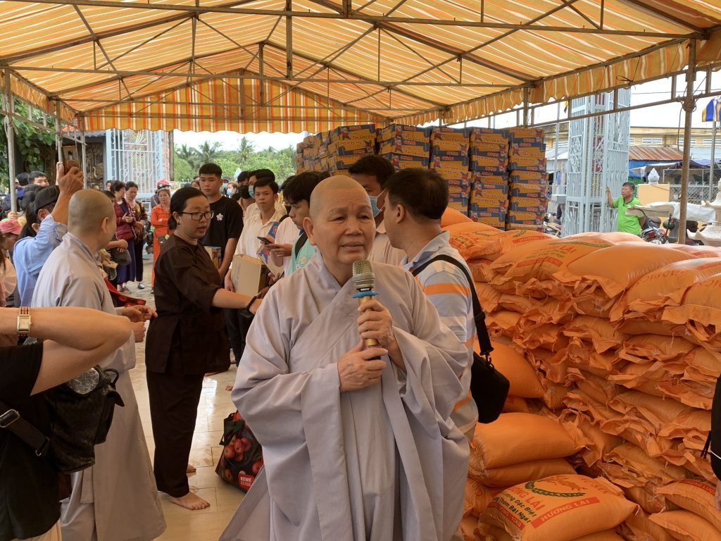 Sau thời thuyết pháp, Ni sư Trụ trì chùa Nam An đã kết hợp chính quyền địa phương và các nhà hảo tâm trao tặng 500 phần quà cho các hộ nghèo có hoàn cảnh khó khăn tại địa phương, hội người mù huyện Châu Thành, huyện Gò Công Tây, huyện Cai Lậy, người nhiễm chất độc màu da cam, người ngồi xe lăn xe lắc. Mỗi phần quà gồm 10kg gạo, 1 thùng mì, 1 chay dầu ăn, 1 chay nước tương, 1 kg đường, 1 kg muối, 1 ổ bánh mì ngọt, 1 phần bánh gạo, 150 ngàn đồng tiền mặt. Tổng kinh phí chung của các phần quà là 220 triệu đồng.