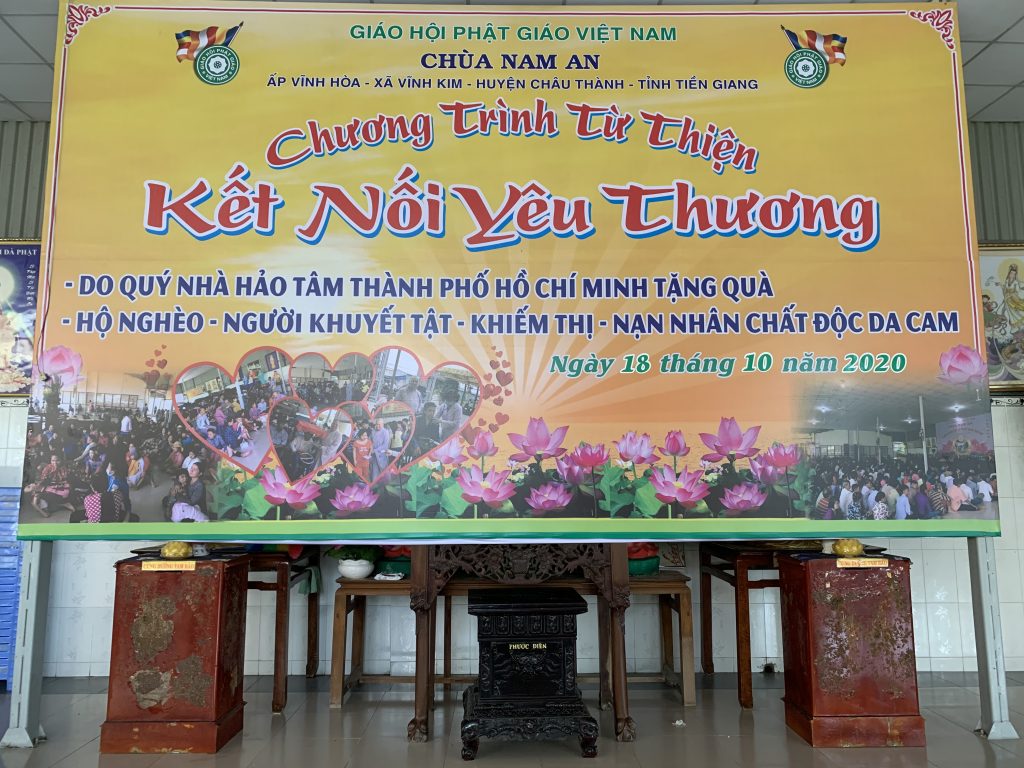 PSO - Sáng ngày 18/10/2020 (02/9 năm Canh Tý) Ni sư Thích Nữ Như Nguyên - Ủy viên BTS, Phó trưởng Ban Từ thiện Xã hội Phật giáo tỉnh Tiền Giang, Trụ trì chùa Nam An (xã Vĩnh Kim, Châu Thành, Tiền Giang) đã tổ chức buổi thuyết pháp; đồng thời kết hợp với các nhà hảo tâm tại TP.Hồ Chí Minh phát 500 phần quà cho bà con nghèo có hoàn cảnh khó khăn, hội người mù huyện Gò Công Tây, huyện Cai Lậy, huyện Châu thành, người khuyết tật, người bị nhiễm chất độc da cam, người ngồi xe lăn xe lắc thuộc huyện Châu Thành.