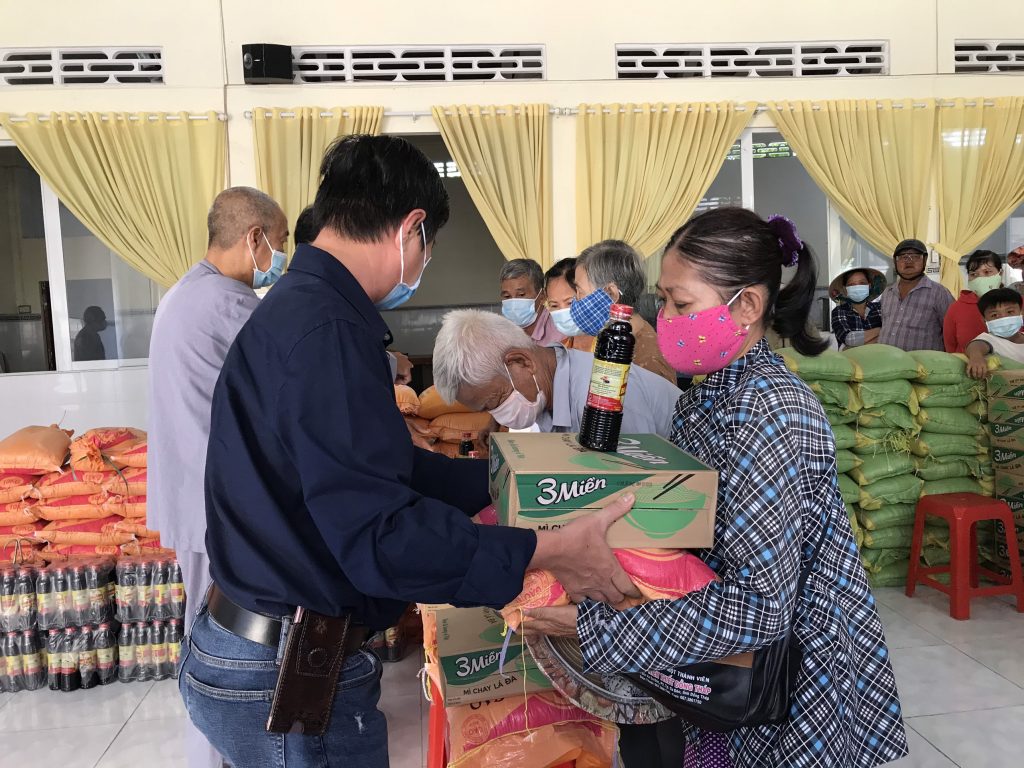 Buổi tặng quà dưới sự hướng dẫn của Thượng tọa Thích Thiện Lưu cùng chư Tăng và Phật tử chùa Phước Ân. Đại diện chính quyền địa phương có ông Nguyễn Văn Chính - Chủ tịch UB MTTQVN xã Đông Hòa Hiệp đồng tham dự.