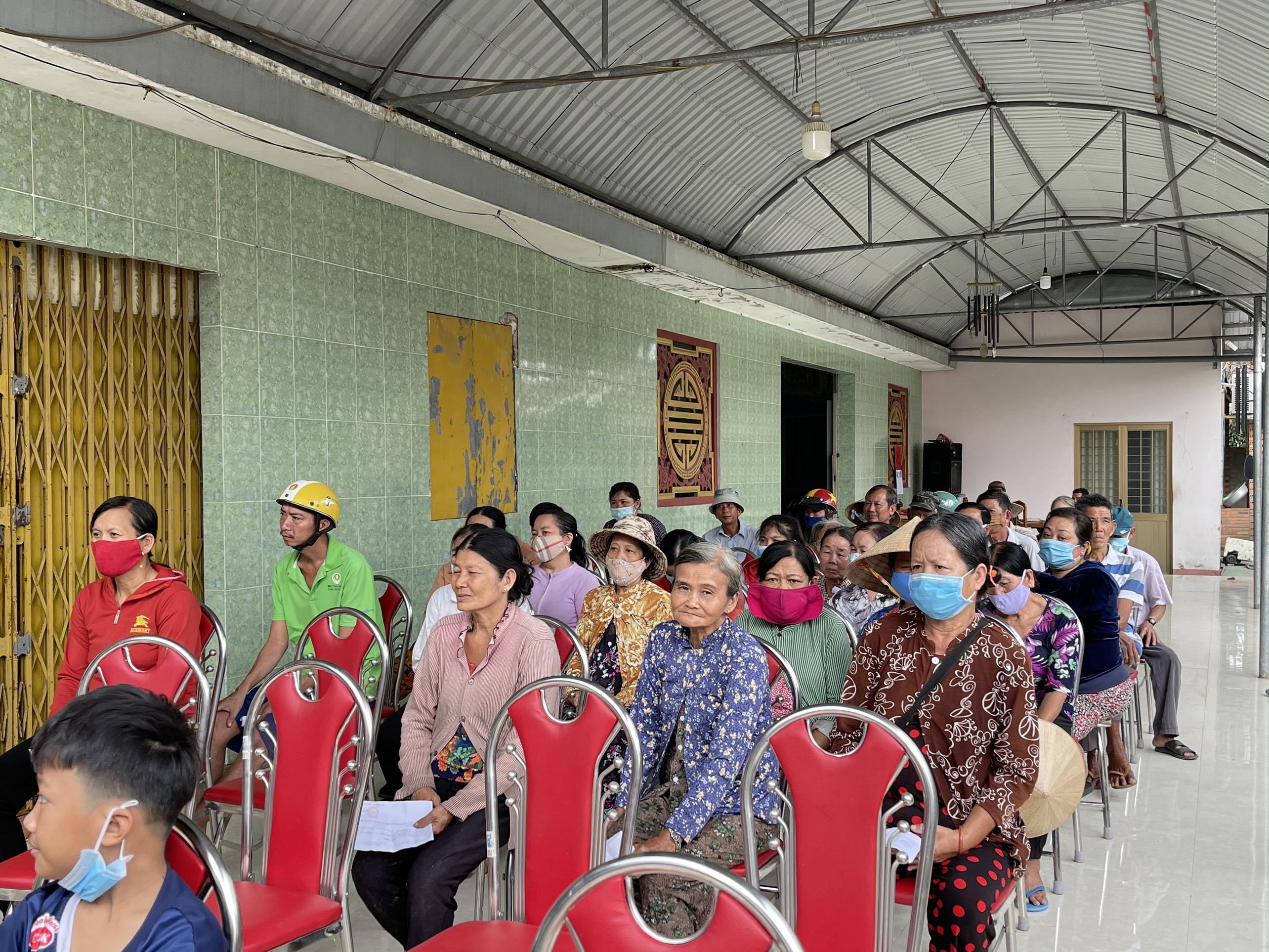 Tham dự buổi trao quà có ông Nguyễn Văn Đông - Chủ tịch UB MTTQVN xã Thân Cửu Nghĩa, cùng cán bộ Cty Vạn Đức - Tiền Giang và đông đảo bà con đến nhận quà.