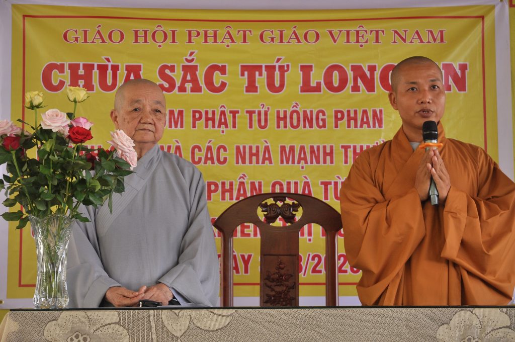 Trước khi trao tặng quà, Đại đức Thích Phước Nhân phát biểu khai mạc, gửi lời tri ân đến các nhà tài trợ; chia sẻ những khó khăn với bà con. Dịp này, Đại đức Trụ trì cung thỉnh Ni sư Thích Nữ Minh Nhẫn chia sẻ vài điều về giáo lý Phật pháp đến với bà con khiếm thị.