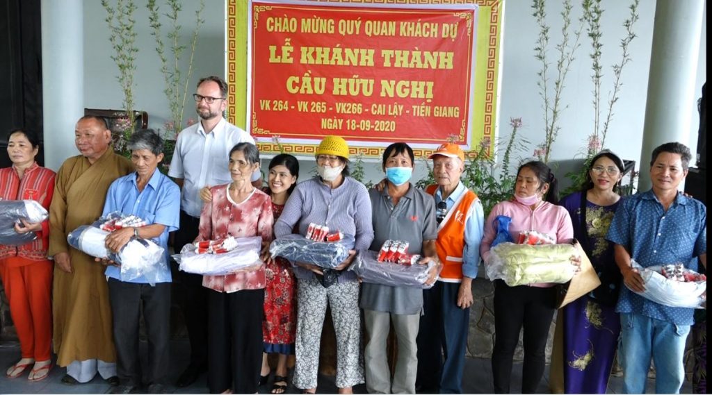 Được sự tài trợ của TT.Thích Truyền Tứ - Trụ trì chùa Huyền Trang (TP.HCM) và cô Cẩm Huyền (Cai Lậy), tại mỗi điểm khánh thành cầu, Ban Tổ chức đã trao 100 phần quà (gồm: gạo, mì gói, cái mền và một số nhu yếu phẩm) cho bà con nghèo, các hoàn cảnh khó khăn ở địa phương. Hai điểm cầu với 200 phần quà trị giá là 800 triệu đồng, góp phần động viên đến bà con nghèo vượt khó.