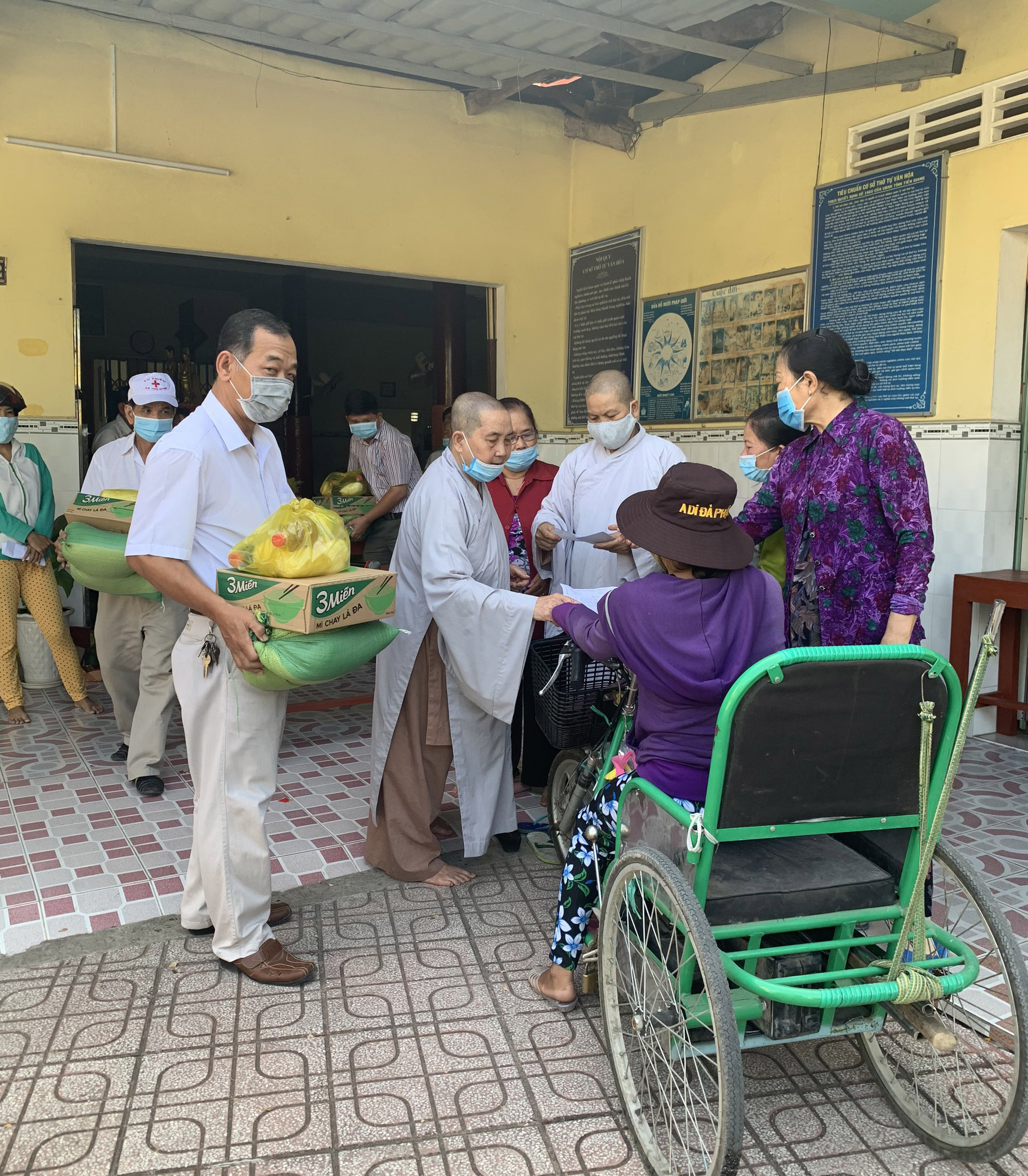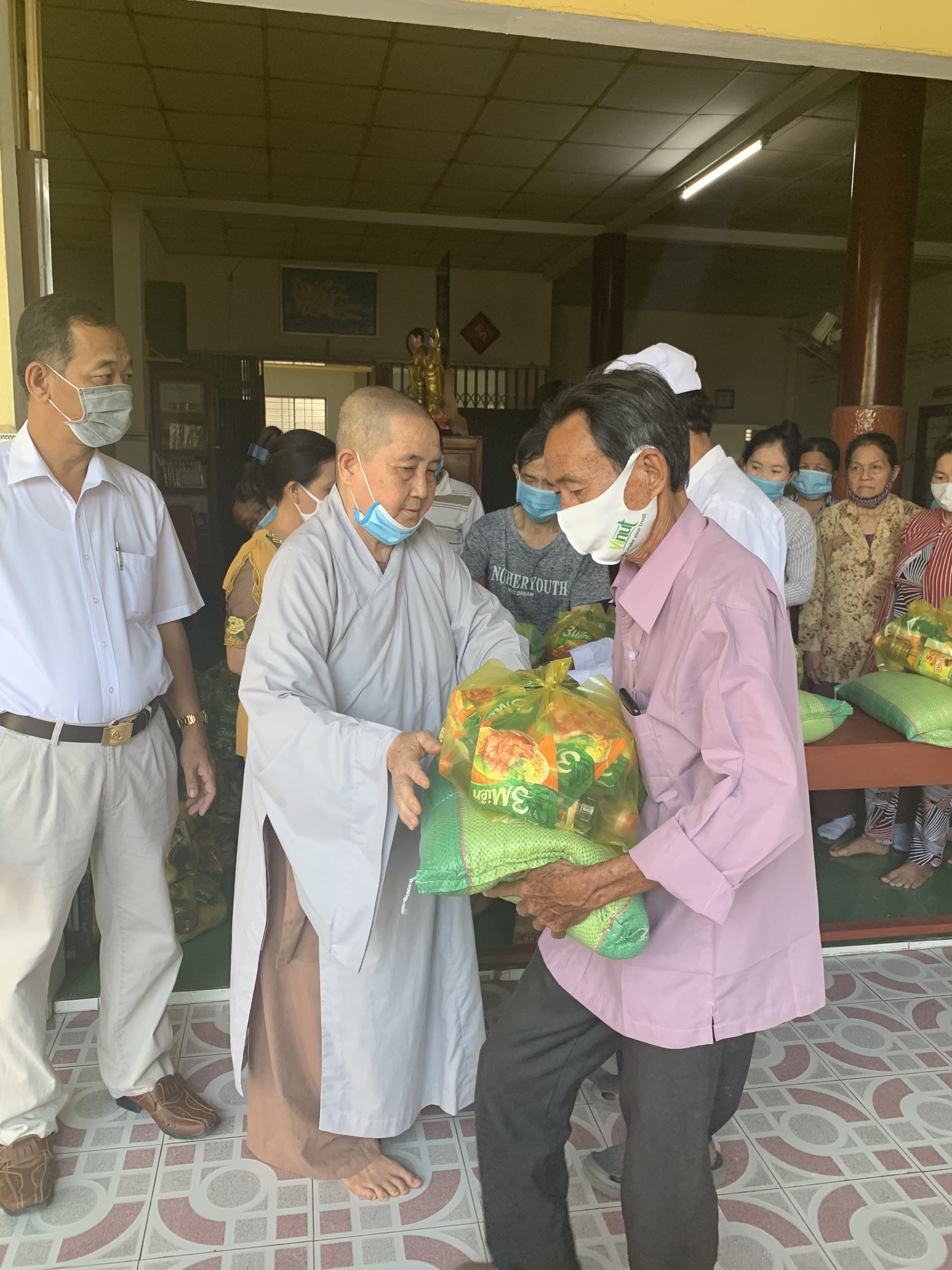 PSO – Sáng ngày 10/03/2021 (27 tháng Giêng năm Tân Sửu), Sư cô Thích Nữ Diệu Minh – Trụ trì chùa Thiên Phước Ni, xã Song Thuận, huyện Châu Thành, tỉnh Tiền Giang đã tổ chức trao tặng 340 phần quà đến người khiếm thị, người khuyết tật, người nhiễm chất độc Da cam và các hoàn cảnh khó khăn trong huyện Châu Thành nhân dịp đầu năm Tân Sửu.