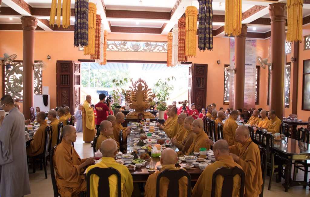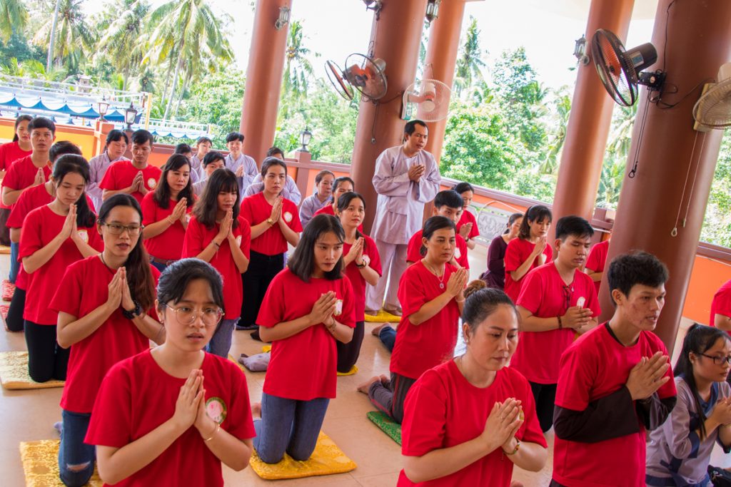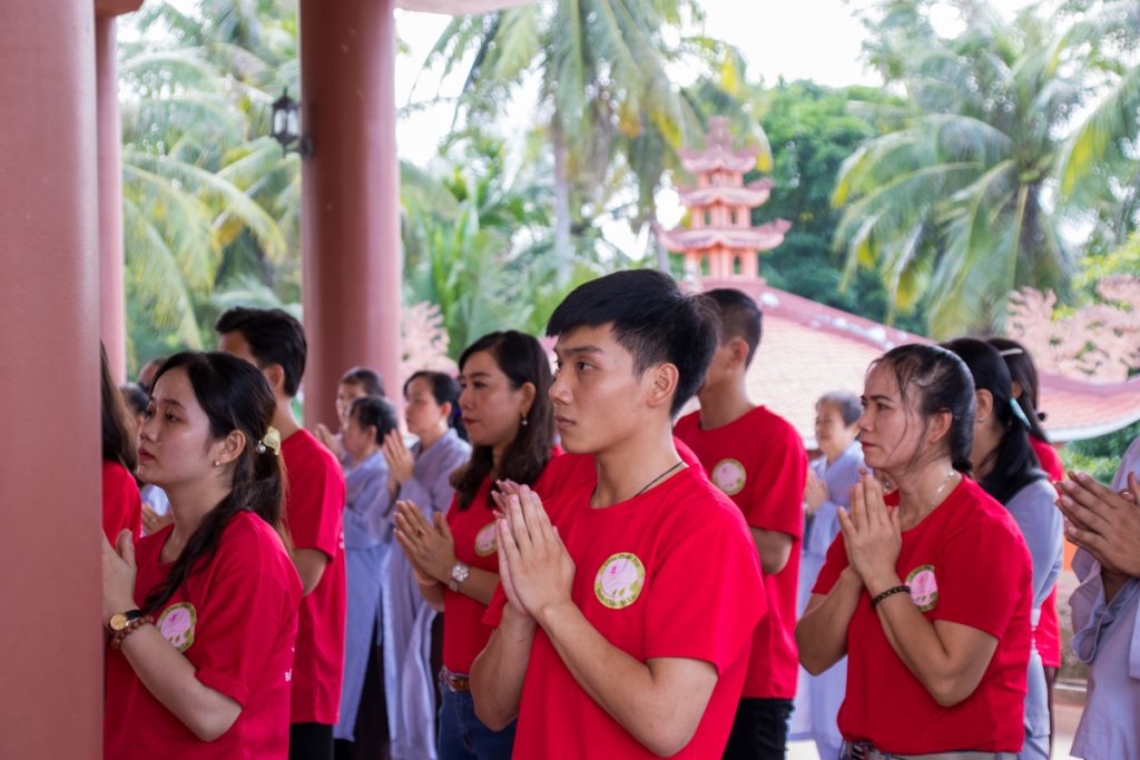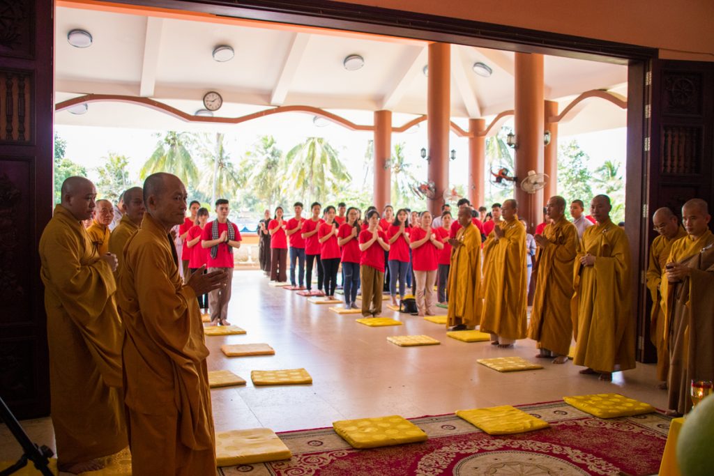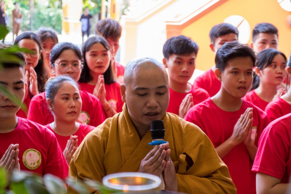 Tại buổi lễ, các bạn trẻ đã tụng một thời kinh cúng ngọ dưới sự hướng dẫn của chư Tôn đức trong hạ trường. Tiếp đó ,ĐĐ. Thích Đức Lộc đã đại diện đoàn tác pháp cúng dường và dâng lời tác bạch lên chư Tôn đức.