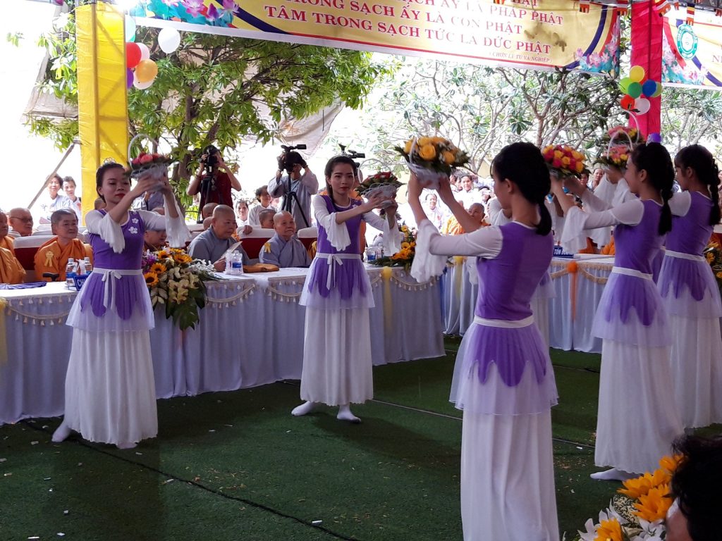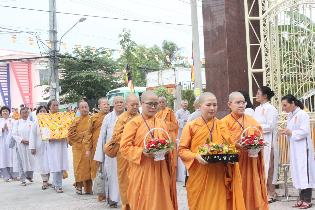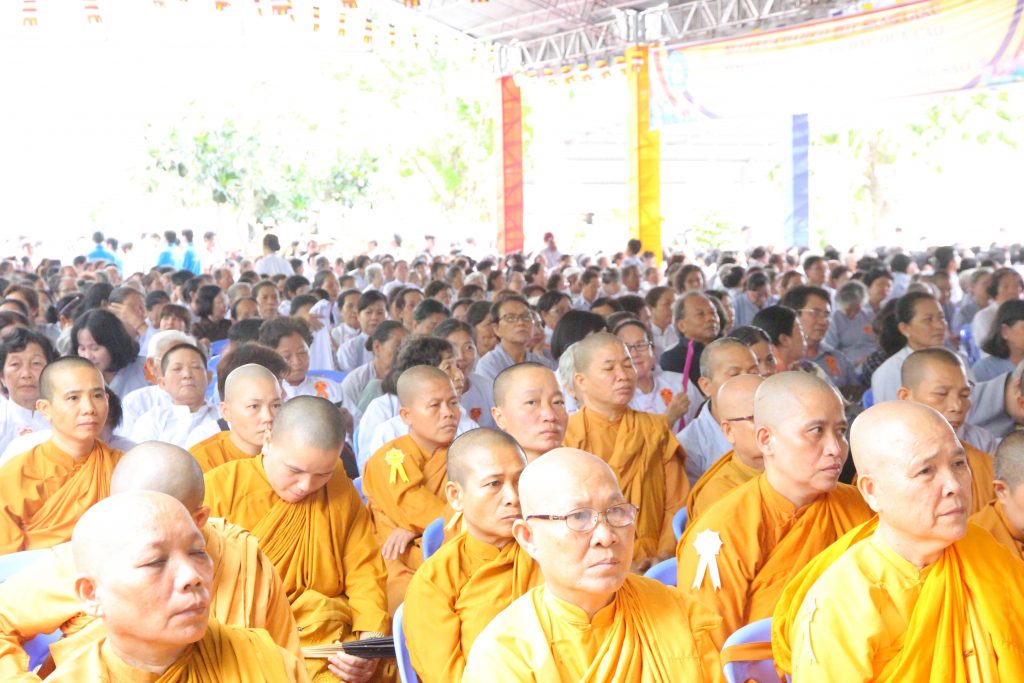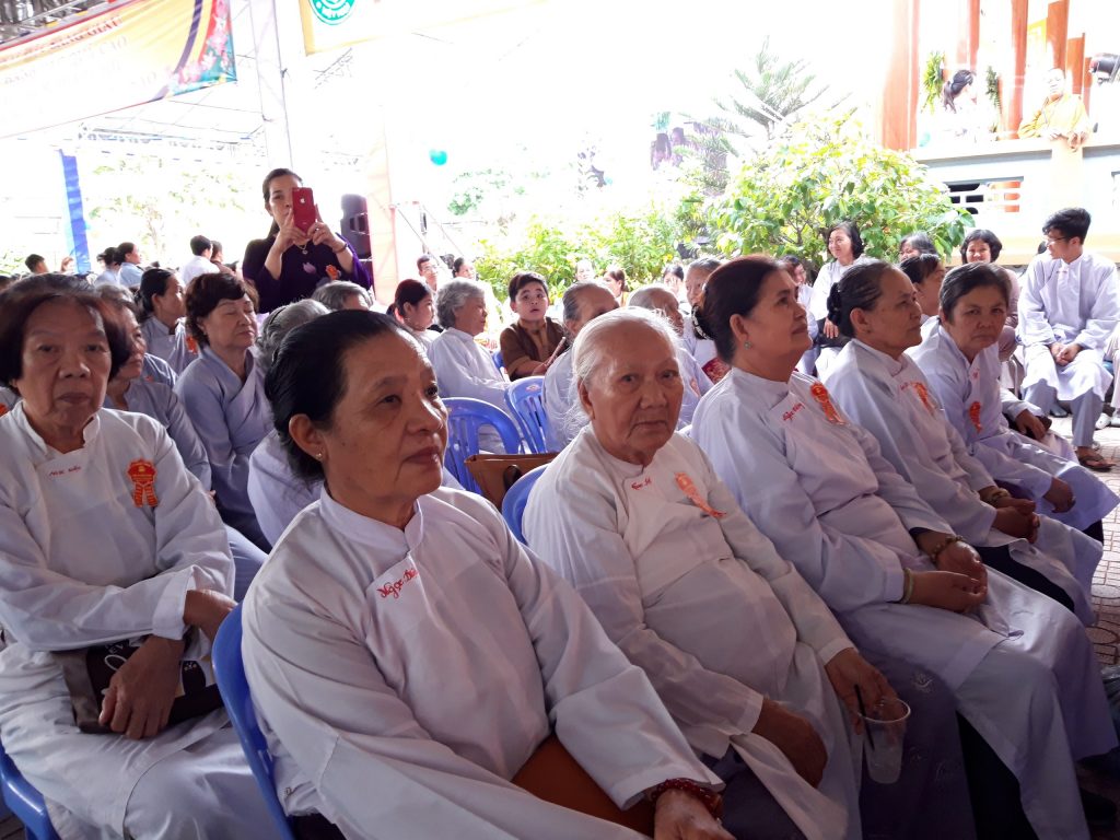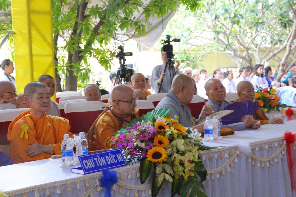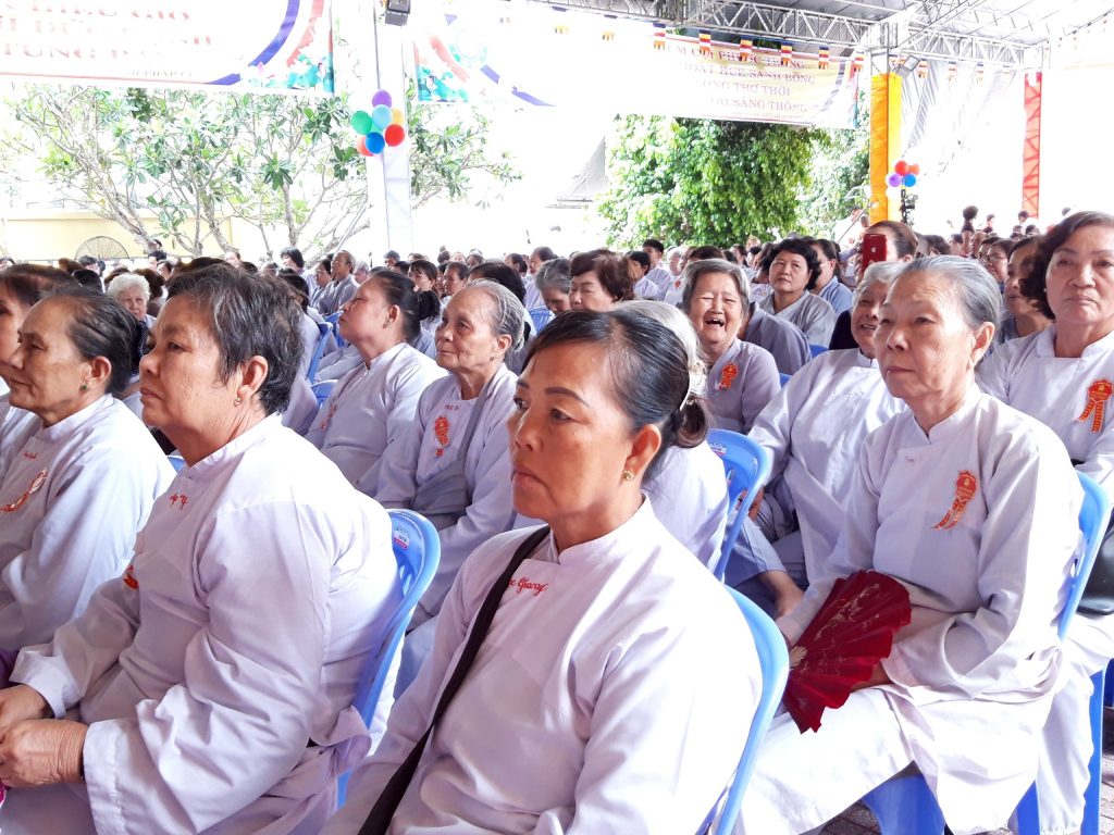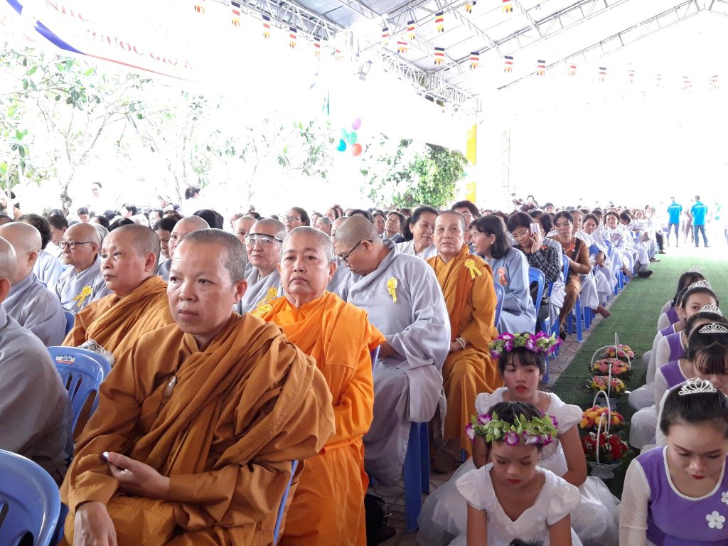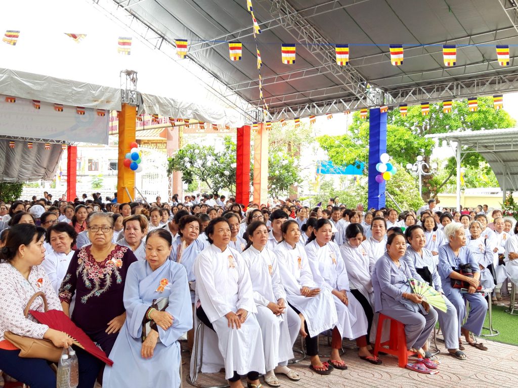 Chư Tôn đức Ni tỉnh Tiền Giang, Ban tổ chức được cung đón: NT. Thích Nữ Minh Châu – Chứng minh PBNG tỉnh Tiền Giang; NT. Thích Nữ Tịnh Nghiêm – Phó trưởng BTS GHPGVN tỉnh, Trưởng PBNG tỉnh Tiền Giang; NS. Thích Nữ Huệ Năng – Phó trưởng BTS GHPGVN tỉnh; cùng chư Tôn đức Ni trụ trì các tự viện trong tỉnh và hơn 2.000 Phật tử các đạo tràng trong và ngoài tỉnh đồng về tham dự.
