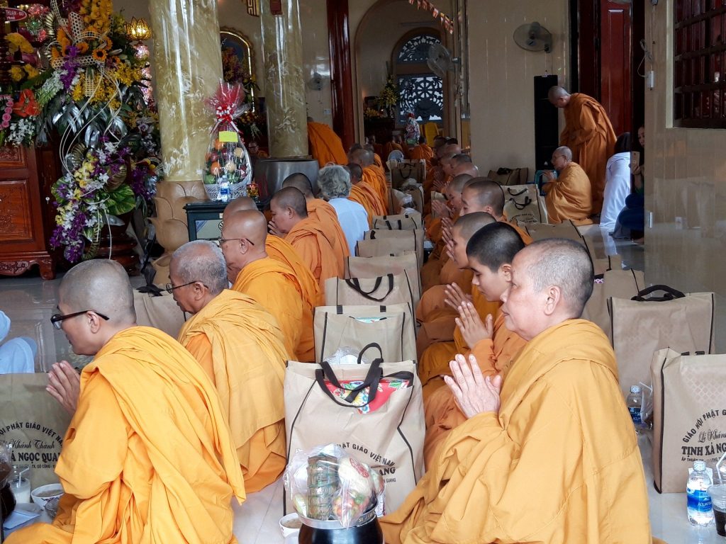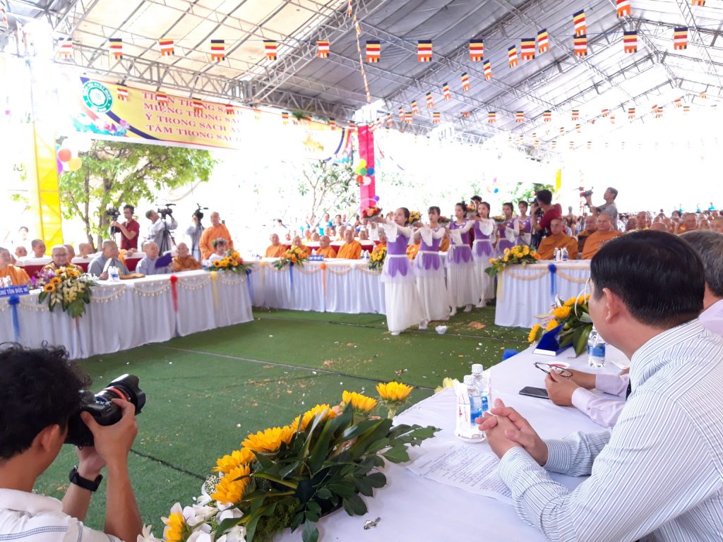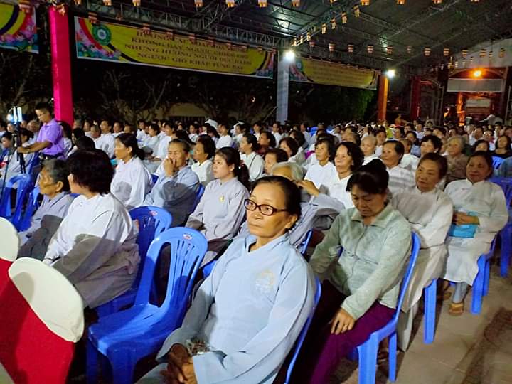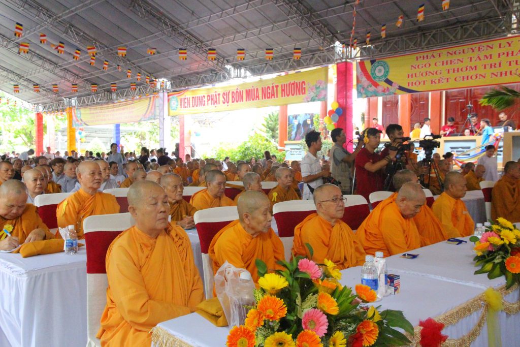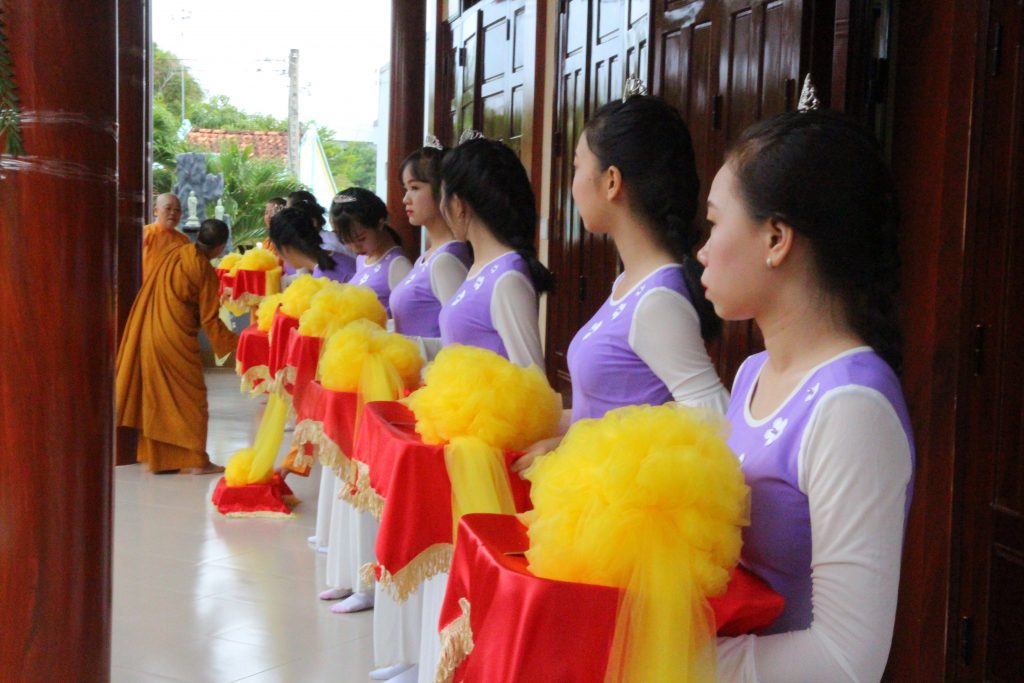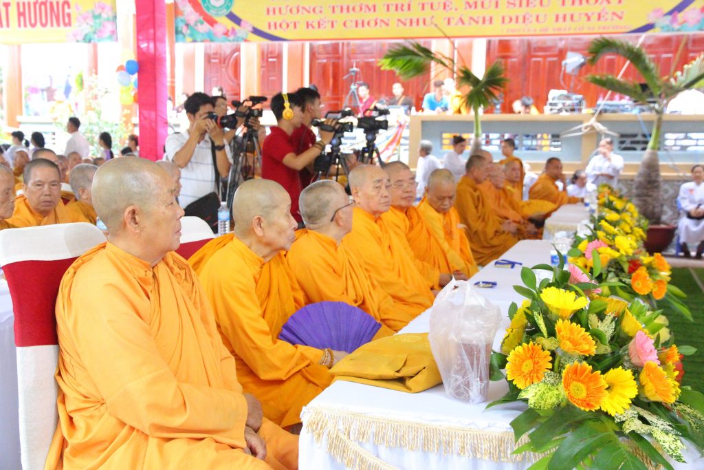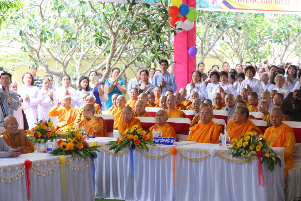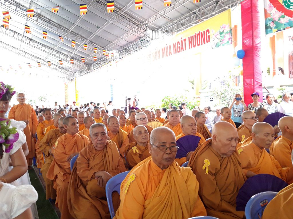 Chư Tôn đức Ni tỉnh Tiền Giang, Ban tổ chức được cung đón: NT. Thích Nữ Minh Châu – Chứng minh PBNG tỉnh Tiền Giang; NT. Thích Nữ Tịnh Nghiêm – Phó trưởng BTS GHPGVN tỉnh, Trưởng PBNG tỉnh Tiền Giang; NS. Thích Nữ Huệ Năng – Phó trưởng BTS GHPGVN tỉnh; cùng chư Tôn đức Ni trụ trì các tự viện trong tỉnh và hơn 2.000 Phật tử các đạo tràng trong và ngoài tỉnh đồng về tham dự.