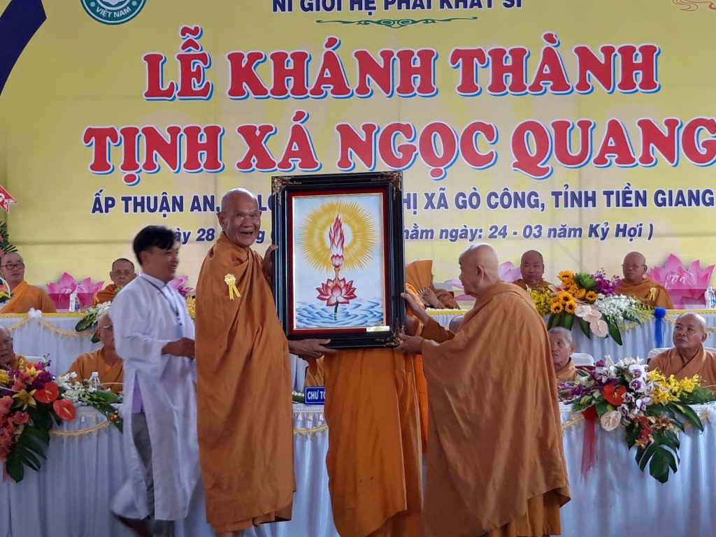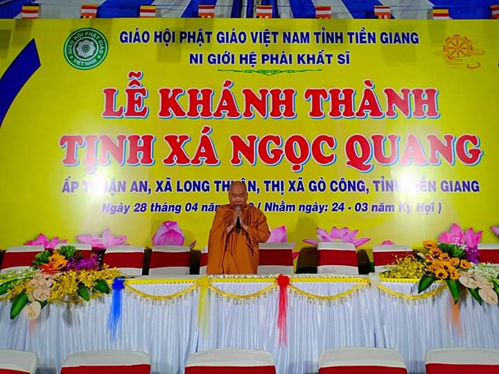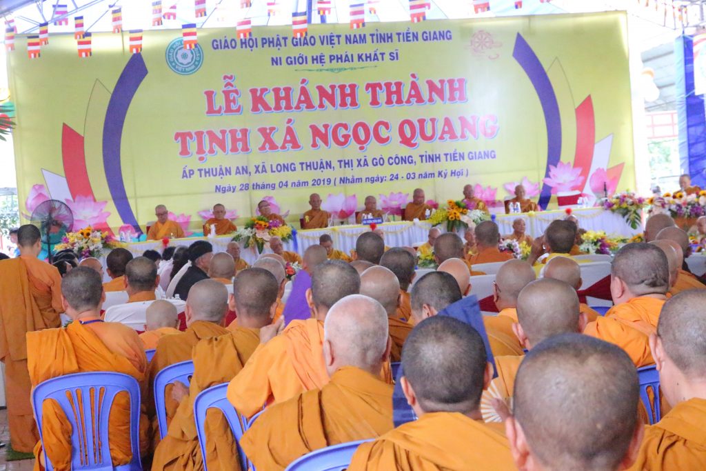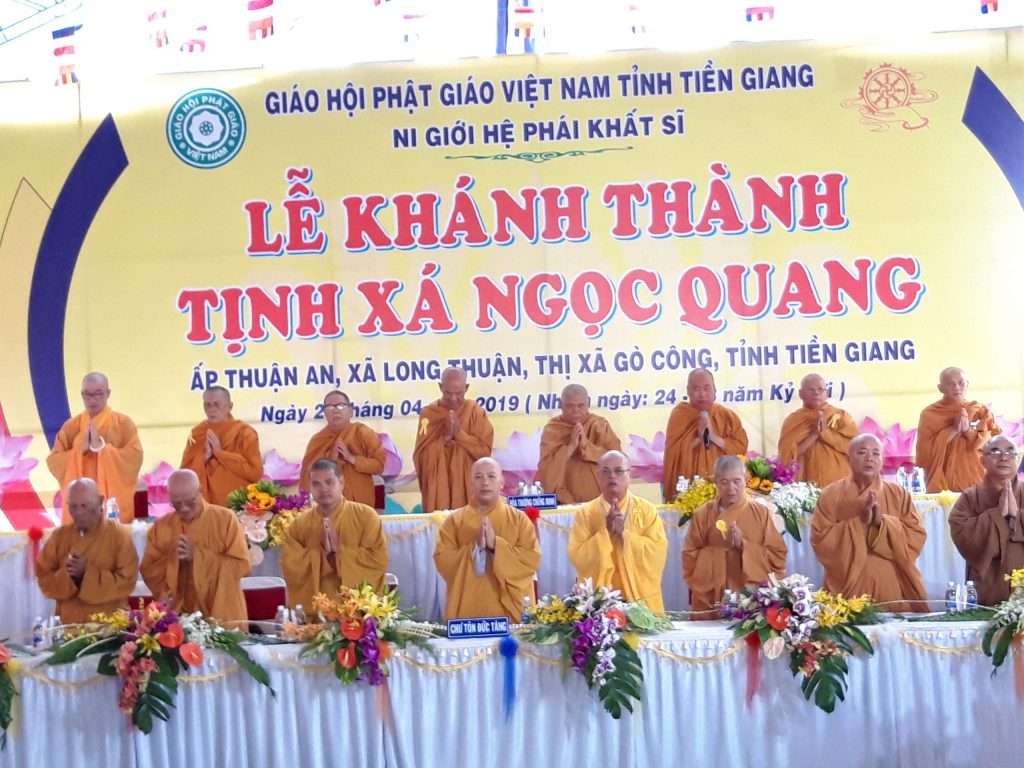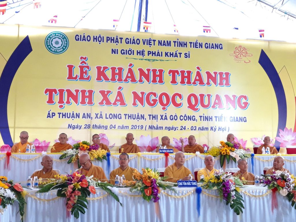 Trước niềm vui chung của Phật giáo cả nước, chư Tôn đức Giáo phẩm Ni giới Hệ phái Khất sĩ nói chung, chư Tôn đức Ni tại TX. Ngọc Quang (ấp Thuận An, xã Long Thuận, thị xã Gò Công, tỉnh Tiền Giang) nói riêng vô cùng hoan hỷ. Nhờ Tam bảo gia hộ, được sự cho phép của Giáo hội và Chính quyền địa phương, sự quan tâm ủng hộ của chư Tôn đức Tăng Ni Hệ phái Khất sĩ (HPKS), Phật tử gần xa, tịnh xá Ngọc Quang sau 2 năm thi công trùng tu ngôi Chánh điện cùng các công trình phụ đến nay đã thành công tốt đẹp. Để đáp tạ hồng ân Tam bảo, thâm tạ công đức của chư Tôn đức, NT. Tân Liên trụ trì cùng quý Phật tử trọng thể tổ chức Lễ Khánh thành ngôi tịnh xá Ngọc Quang.