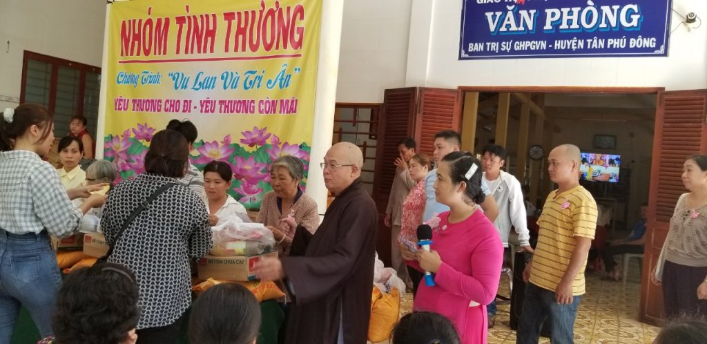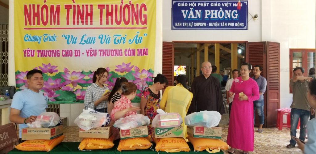 Với tinh thần của người con Phật hướng về mùa Vu lan Báo hiếu, ngoài việc hướng dẫn đạo tràng Phật tử tổ chức trang nghiêm lễ cúng Trung Ngươn theo nghi thức Phật giáo để cầu nguyện quốc thời dân an, cầu siêu độ cữu huyền thất tổ được vãng sinh về cõi an lành; Hòa thượng Trụ trì Tổ đình Linh Bửu còn vận động quý Phật tử, các nhà hảo tâm trong Nhón Tình Thương cùng trao tặng 100 phần quà đến bà con nghèo, các hoàn cảnh khó khăn tại địa phương cùng vươn lên trong cuộc sống.