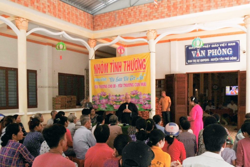 PSO - Sáng ngày 5/9/2020 (18/07 năm Canh Tý) Hòa thượng Thích Thiện Nhẫn - Ủy viên Thường trực BTS GHPGVN tỉnh Tiền Giang, Trưởng BTS Phật giáo huyện Tân Phú Đông, Trụ trì tổ đình Linh Bửu (ấp Tân Quý, xã Tân Thới, huyện Tân Phú Đông, tỉnh Tiền Giang) đã tổ chức trao tặng 100 phần quà trị giá hơn 25 triệu đồng, cho bà con nghèo, các hoàn cảnh khó khăn tại địa phương nhân mùa Vu lan PL.2564.