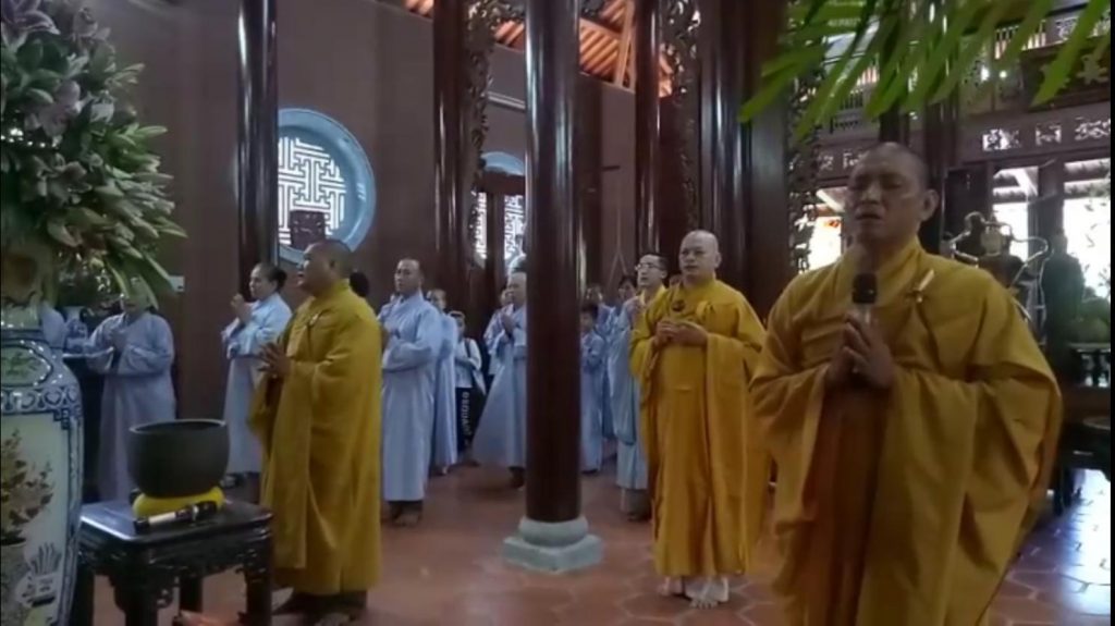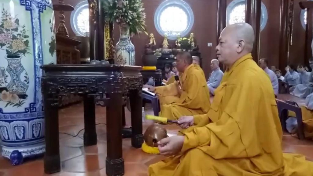 Trong buổi lễ năm nay quý Phật tử được nghe lại công hạnh Báo hiếu của Tôn giả Mục Kiền Liên qua thời khóa tụng kinh tại Đại hùng Bảo điện. Chư tôn đức đã hòa âm phúng tụng kinh văn, hồi hướng cầu nguyện quốc thái dân an. Nguyện cầu gia đạo quý Phật tử được hanh thông, người hiện tại nhiều sức khỏe; cửu huyền thất tổ nội ngoại gia tiên của quý Phật tử và chư hương linh thờ tại bổn tự được siêu sanh tịnh độ.