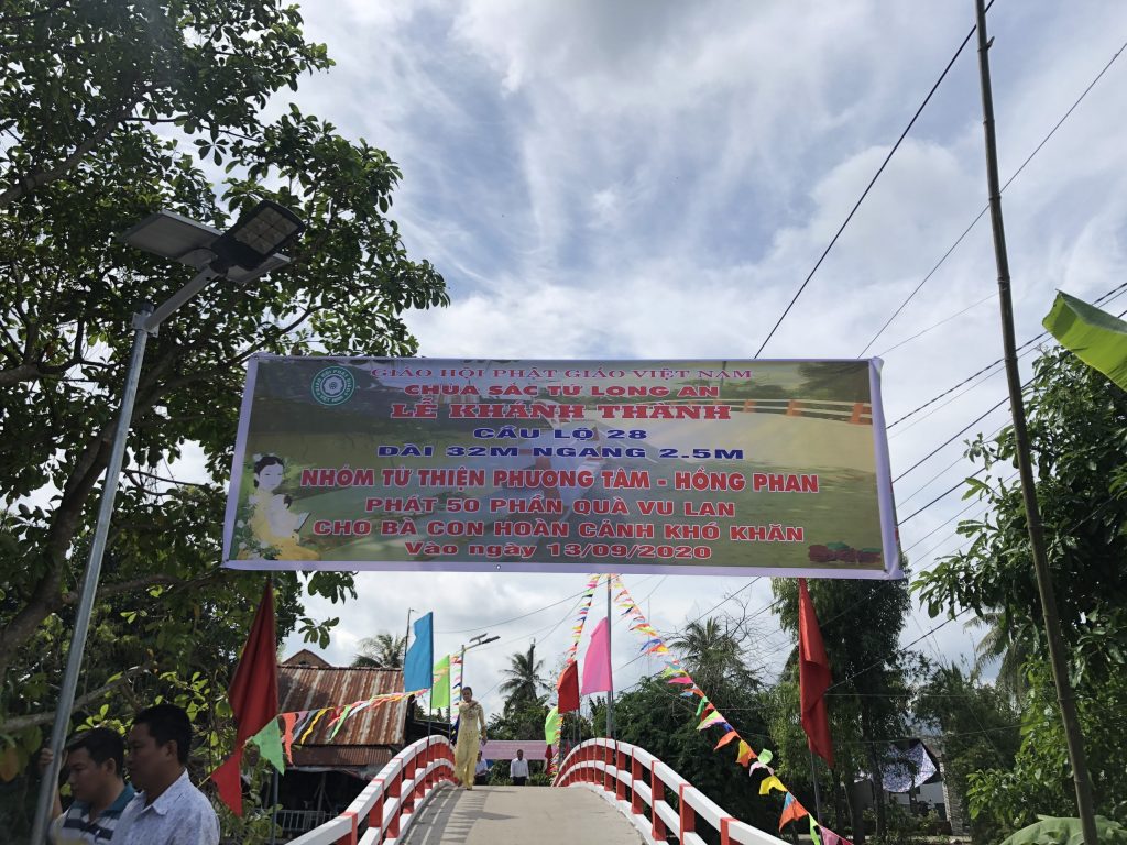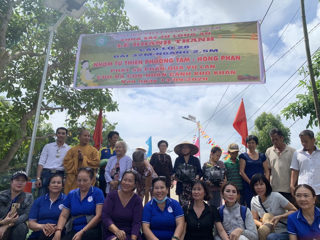 Tổ chức khánh thành Cầu Lộ 28 nối liền hai ấp Bình Sơn và Bình Đức thuộc xã Bình Phú. Cây cầu có chiều dài 32m, ngang 2,5m kinh phí xây dựng 355 triệu đồng do nhóm từ thiện Phương Tâm – Hồng Phan đồng tài trợ và phát 50 phần quà cho bà con khu vực gần cầu Lộ 28. Đồng thời thiết lễ phóng sanh, thả 500 kg cá về môi trường sông nước tự nhiên.