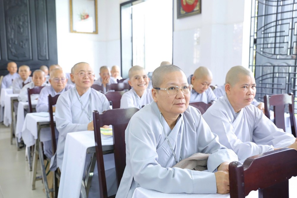 PSO – Chiều ngày 16/4/2025 (nhằm ngày 19/3/Ất Tỵ) trong không khí trang nghiêm của Khoá bồi dưỡng luật học lần 3 tổ chức tại chùa Tịnh Nghiêm (TP.Mỹ Tho), Ni trưởng Thích Nữ Như Đức - Cố vấn Phân ban Ni giới Trung ương, Trụ trì thiền viện Viên Chiếu (tỉnh Đồng Nai) quang lâm chia sẻ một số chủ đề được trích dẫn trong “Trưởng lão Ni kệ” với hơn 200 chư Ni tham dự.