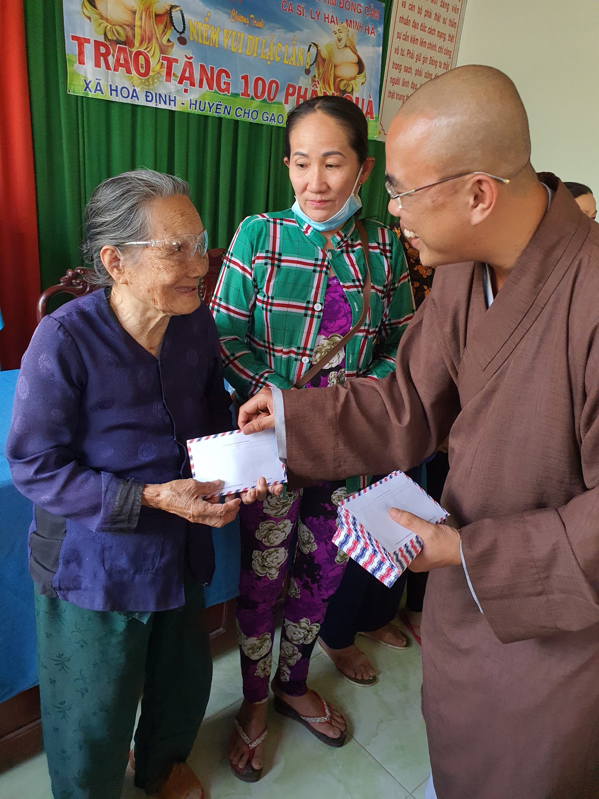 Ngoài ra Đại đức Thích Minh Phước còn tổ chức trao 100 phần Học bổng cho học sinh nghèo huyện Chợ Gạo, mỗi phần là 300 ngàn đồng tiền mặt.