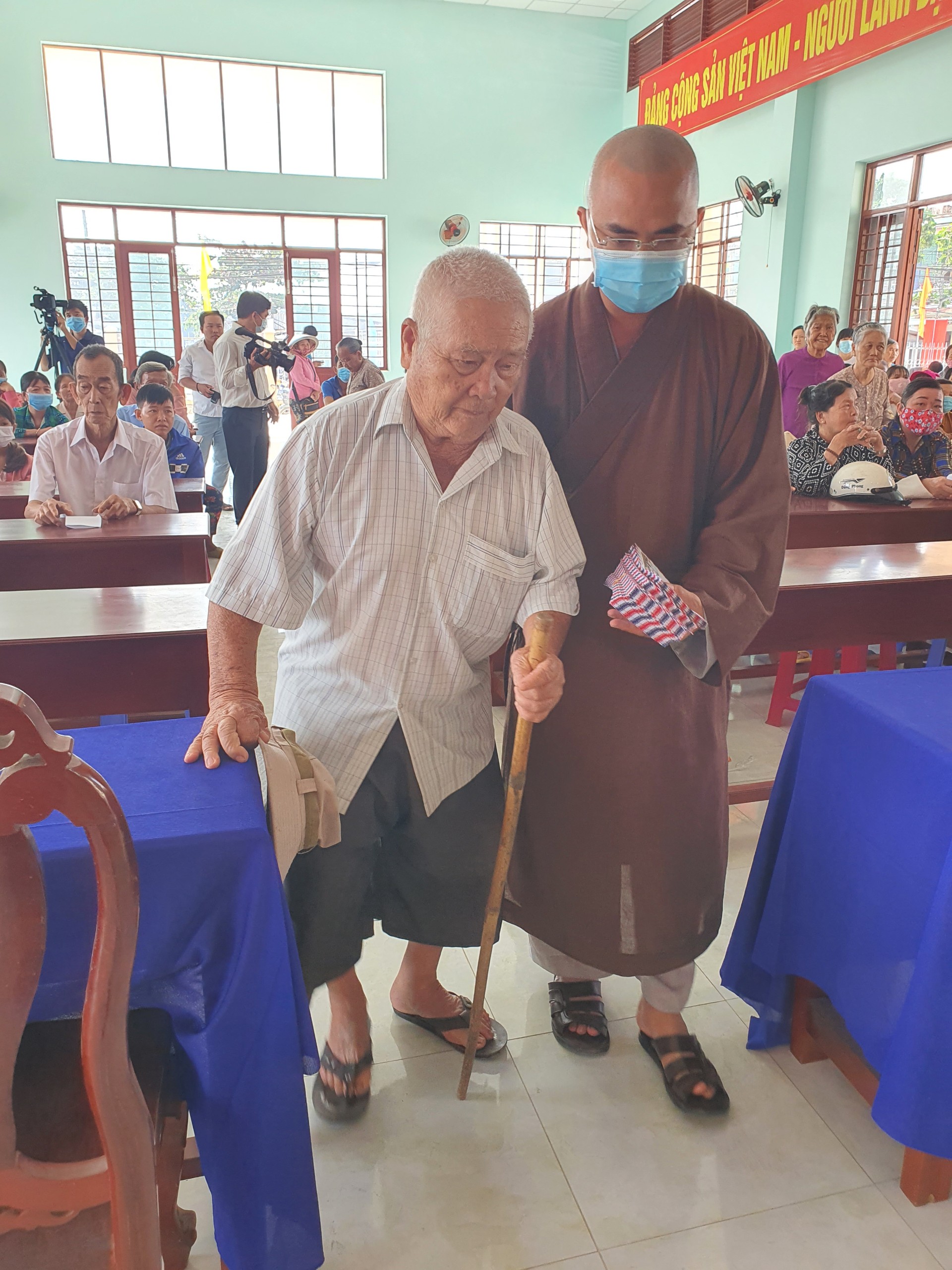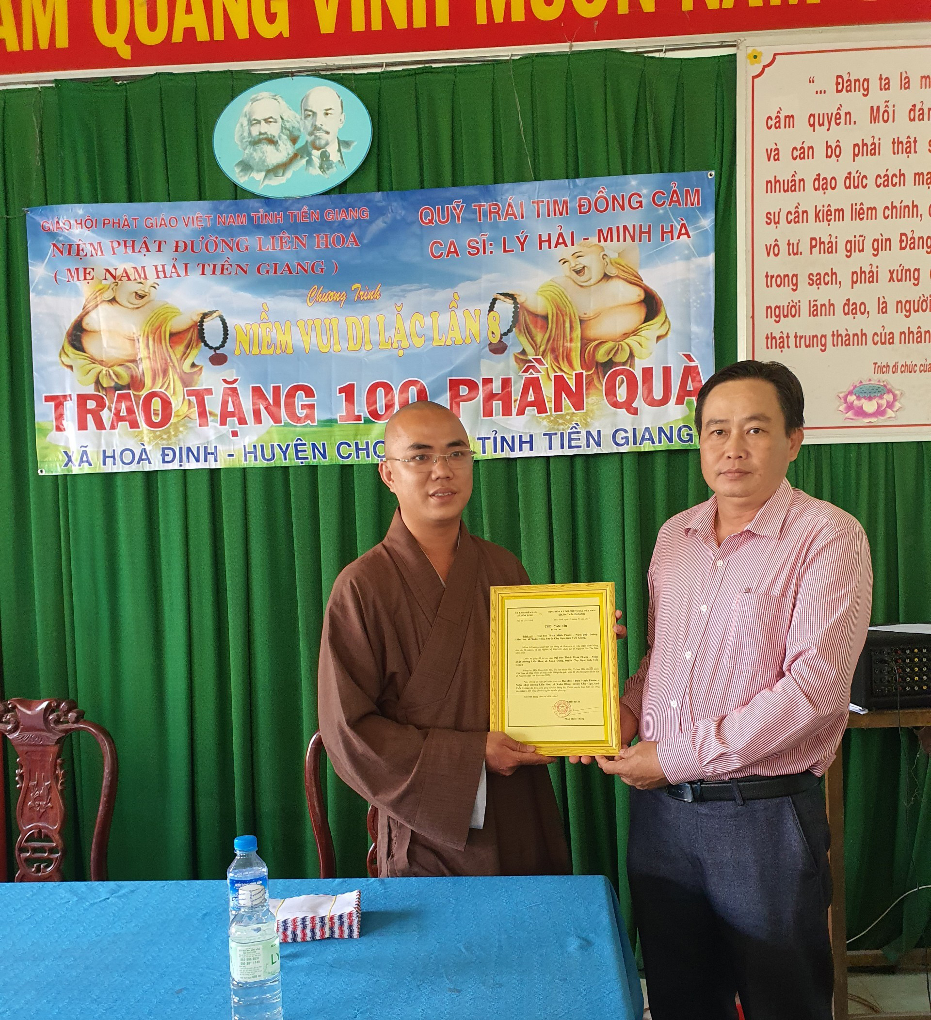 PSO – Nhằm giúp cho bà con nghèo có được một cái Tết cổ truyền thật an vui, trong những ngày cuối năm Canh Tý, Đại đức Thích Minh Phước – Trụ trì Niệm Phật đường Liên Hoa (xã Xuân Đông, huyện Chợ Gạo, Tiền Giang) đã kết hợp với chính quyền các địa phương và nhà tài trợ tổ chức trao tặng 1.900 phần quà với tổng trị giá 665 triệu đồng đến bà con nghèo, các hoàn cảnh khó khăn hai tỉnh: Tiền Giang và Bến Tre.