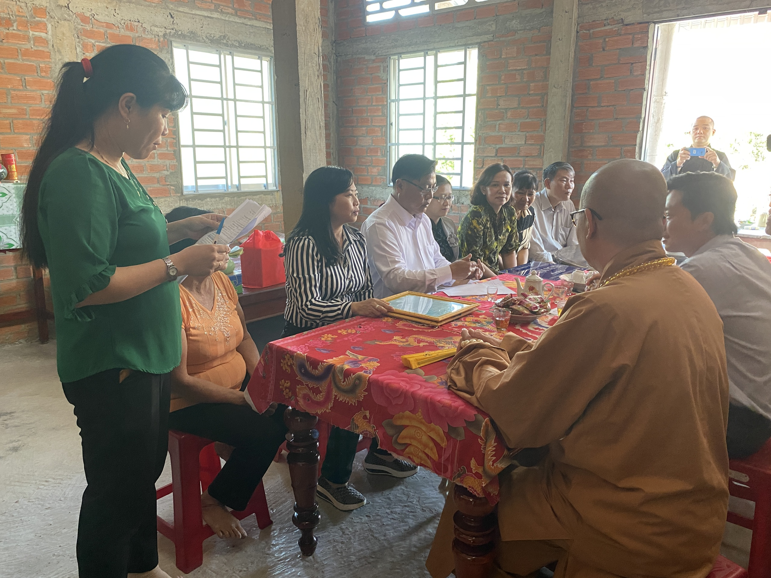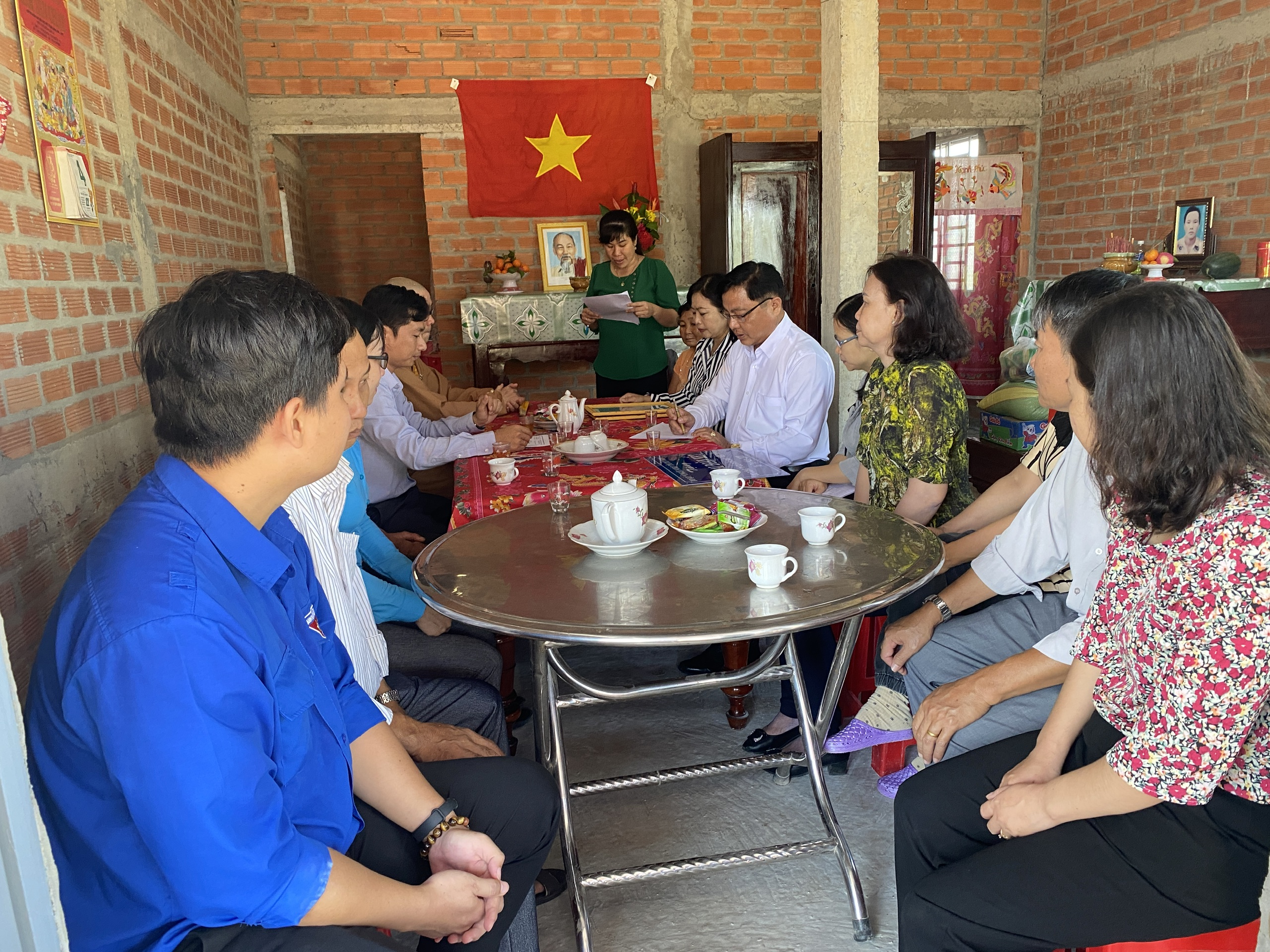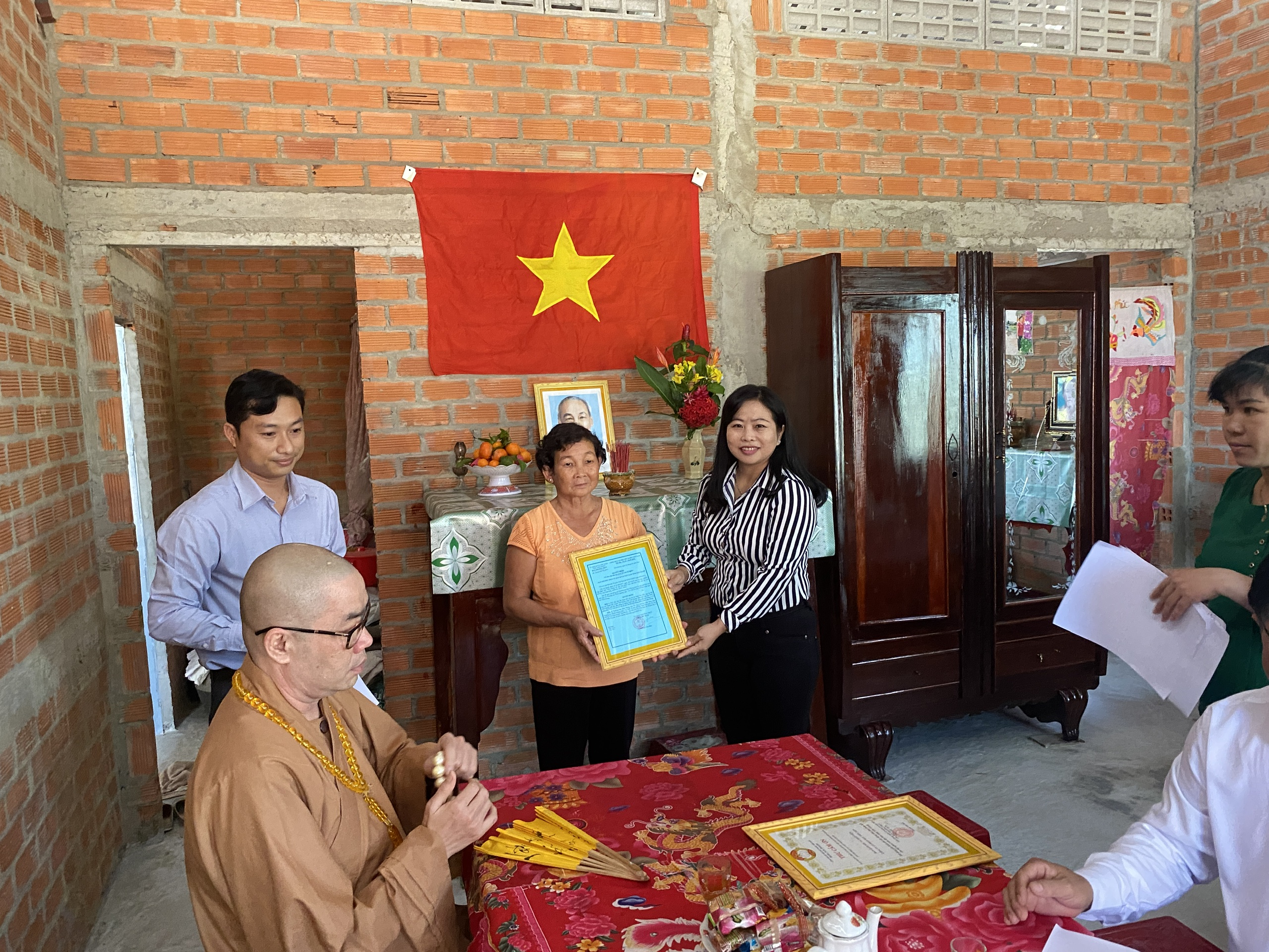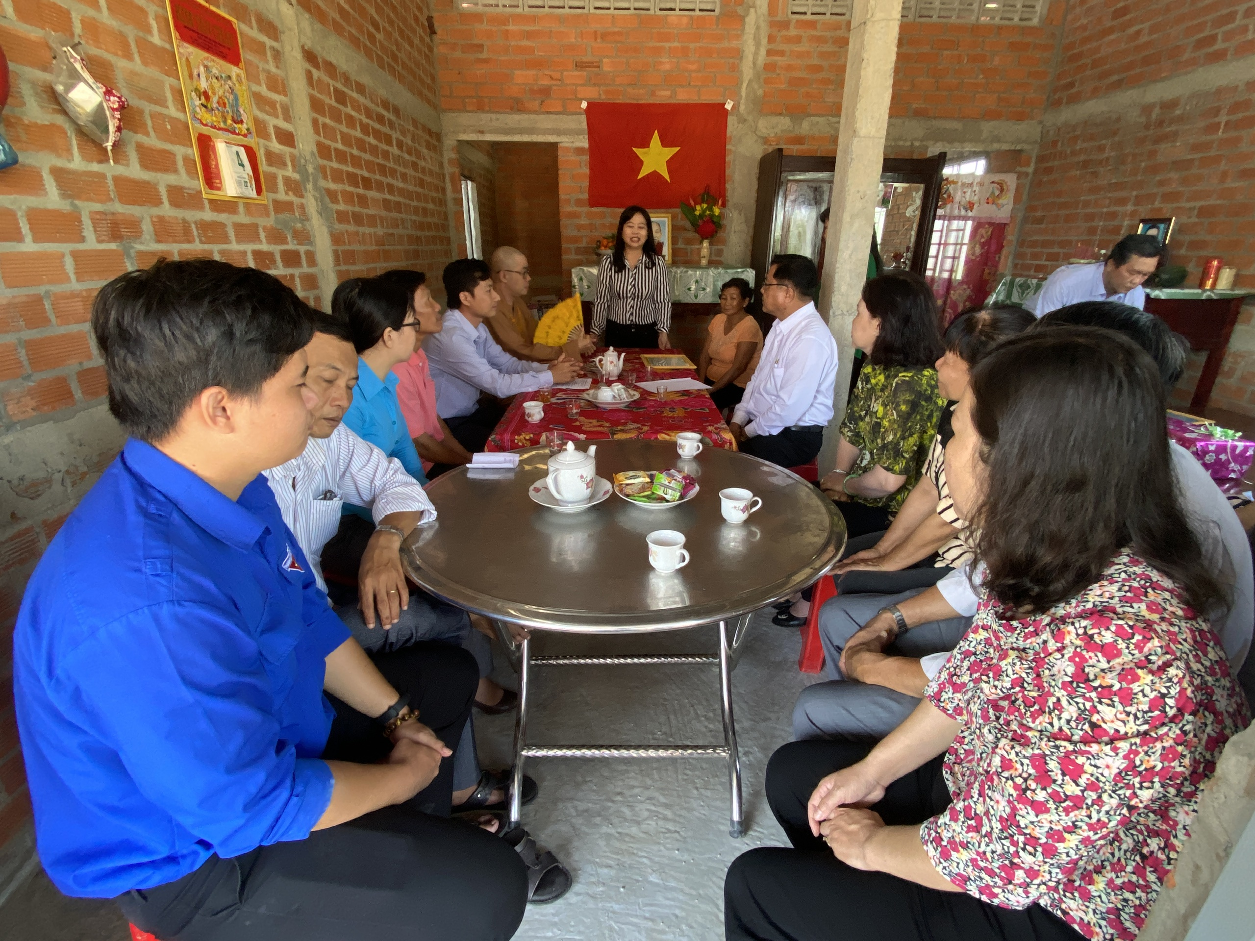 Buổi lễ bàn giao hai căn nhà có sự tham dự của TT.Thích Quảng Lộc – Phó BTS GHPGVN tỉnh Tiền Giang, Trưởng ban Từ thiện Xã hội Phật giáo tỉnh; bà Lê Thị Trang – UV Thường trực, Trưởng ban Phong trào Tôn giáo Dân tộc UB MTTQVN tỉnh; ông Phùng Văn Luân – Huyện ủy viên, Phó Chủ tịch UB MTTQVN huyện Tân Phước; ông Nguyễn Văn Thanh – Phó Bí thư xã Thạnh Mỹ; bà Lê Thị Bé Tiền – Phó Chủ tịch UBND xã Thạnh Mỹ; bà Phan Thị Diễm – Huyện ủy viên, Bí thư Đảng ủy xã Phước Lập; ông Nguyễn Hòa Anh – Phó Chủ tịch UBND xã Phước Lập; ông Hồ Thanh Khoa – Chủ tịch MTTQVN xã Phước Lập; bà Huỳnh Thị Thủy – Phó Giám đốc Cty May Tiền Tiến; bà Nguyễn Thị Sen – Phó GĐ Cty May Việt Thành; đại diện lãnh đạo các ấp sở tại và bà con địa phương với hai gia đình đồng tham dự.