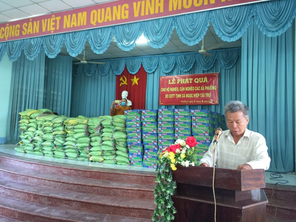 Ông Trương Văn Sơn - Phó Chủ tịch UB MTTQVN phường 2 phát biểu tại buổi tặng quàÔng Trương Văn Sơn - Phó Chủ tịch UB MTTQVN phường 2 thay mặt lãnh đạo chính quyền tham dự buổi tặng quà gửi lời chân thành cám ơn Hòa thượng Thích Giác Pháp, quý Phật tử đạo tràng tịnh xá Ngọc Hiệp cũng như các nhà hảo tâm đã đồng tâm hiệp lực tổ chức buổi phát quà từ thiện đầy ý nghĩa hôm nay.