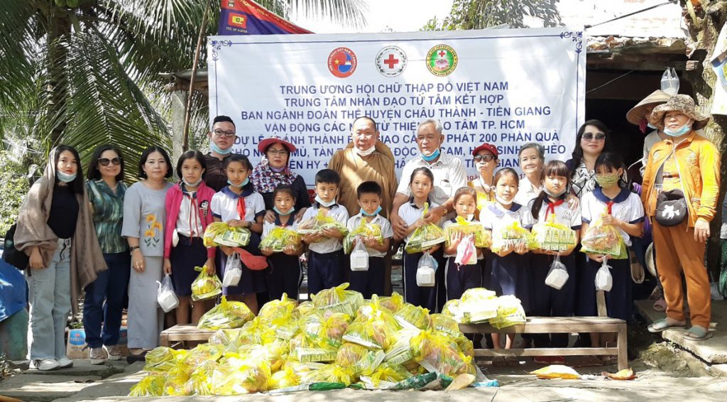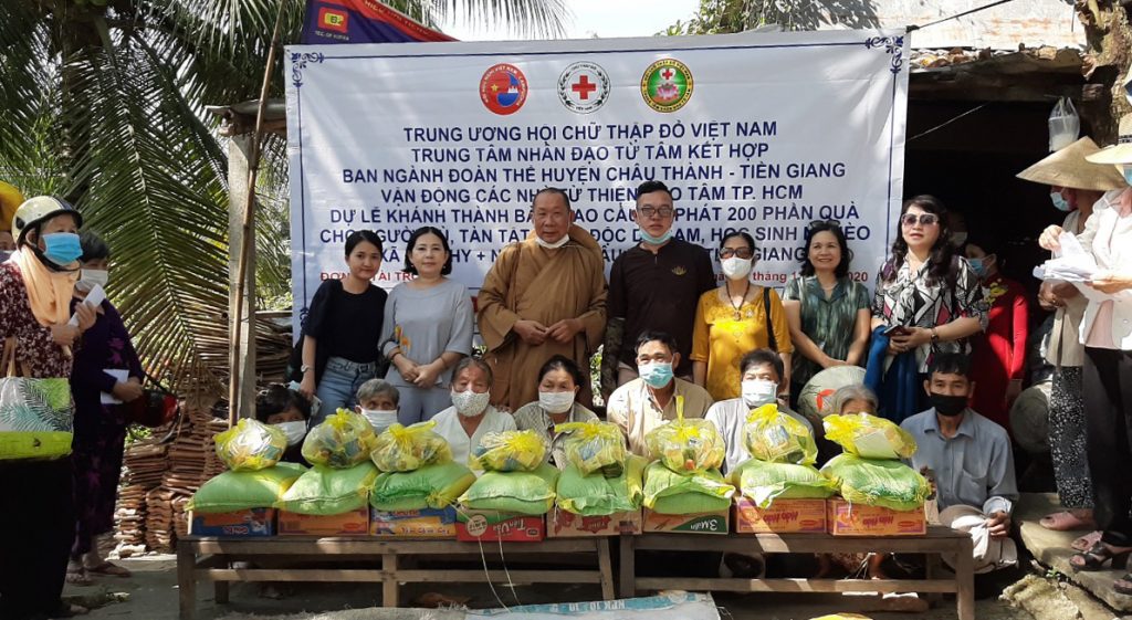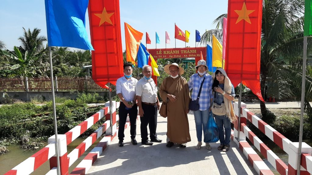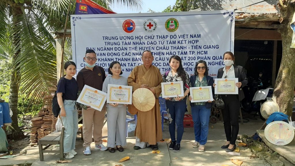 Trong niềm vui ngày khánh thành cầu bê tông, Trung tâm Nhân đạo Từ Tâm đã trao tặng 200 phần quà cho người già tàn tật, nạn nhân nhân nhiễm chất độc da cam và học sinh nghèo thuộc 2 xã Điêm Hy va Nhị Bình, huyện Châu Thành, tỉnh Tiền Giang.