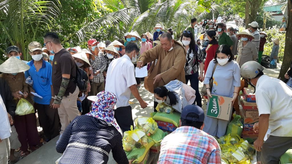 Ngoài những phần quà được trao, Phật tử Trần Thị Kim Hương, trong đoàn đã phát 200 phần xôi ăn sáng dành cho các học sinh và bà con tham dự.