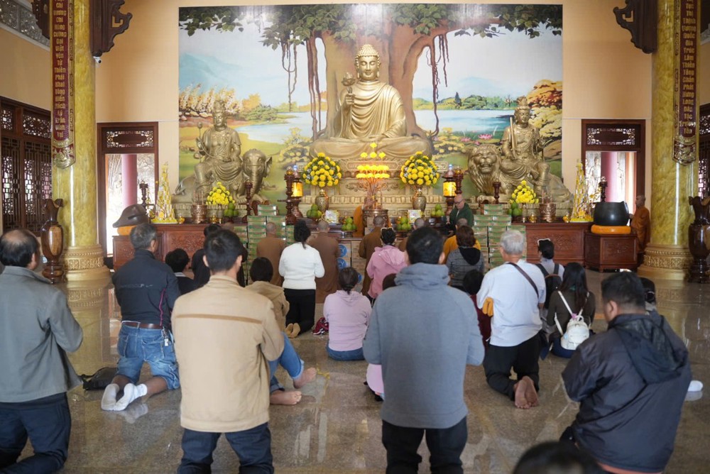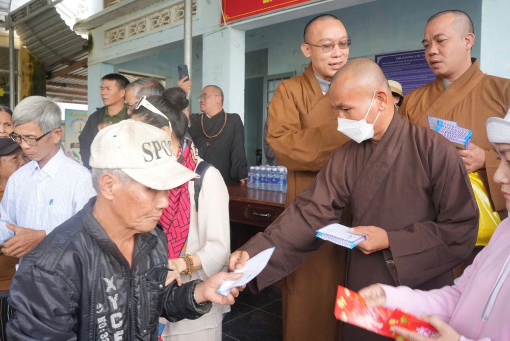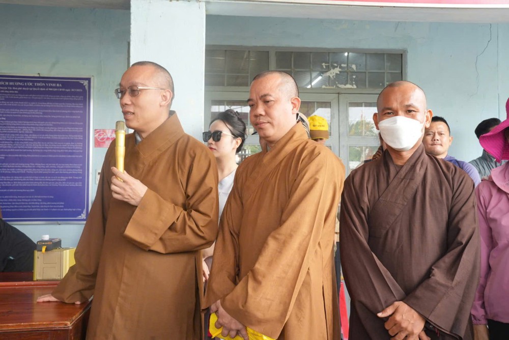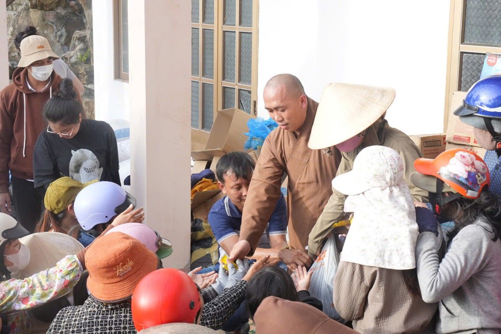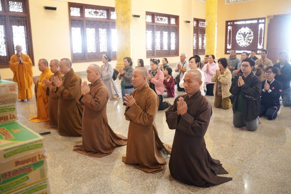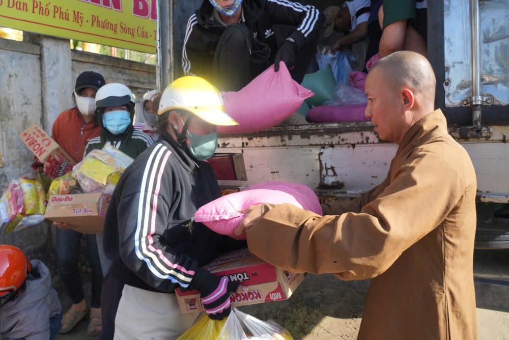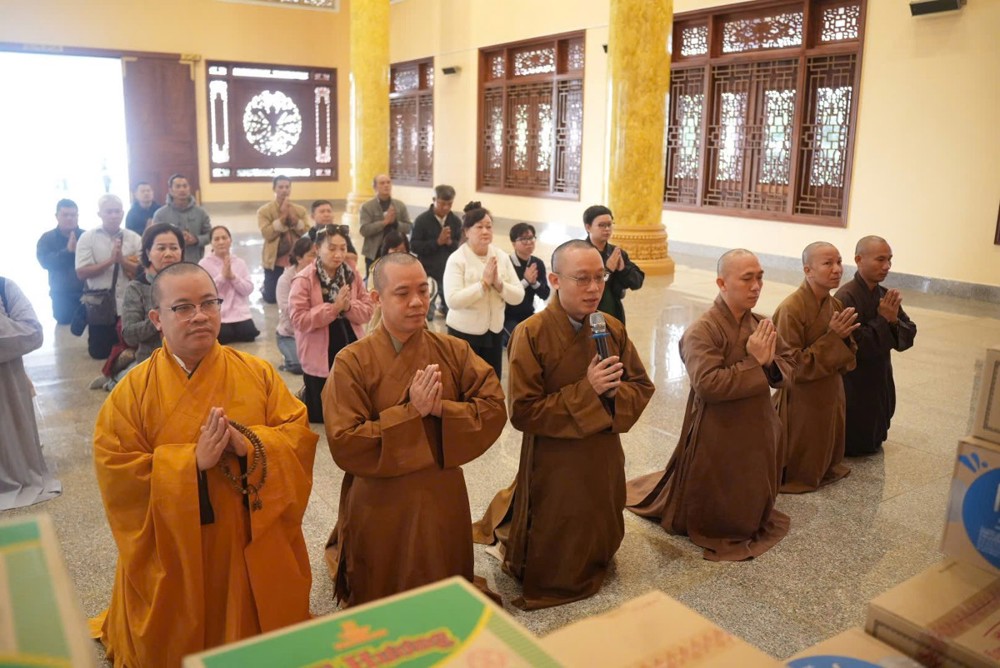 Trước khi đến với bà con vùng thiên tai, đoàn đã đến thiền viện Trúc Lâm Phú Yên, đảnh lễ Tam bảo và cúng dường tịnh tài, cầu nguyện quốc thái dân an, mưa thuận gió hòa, mọi nhà sớm vượt qua khốn khó.