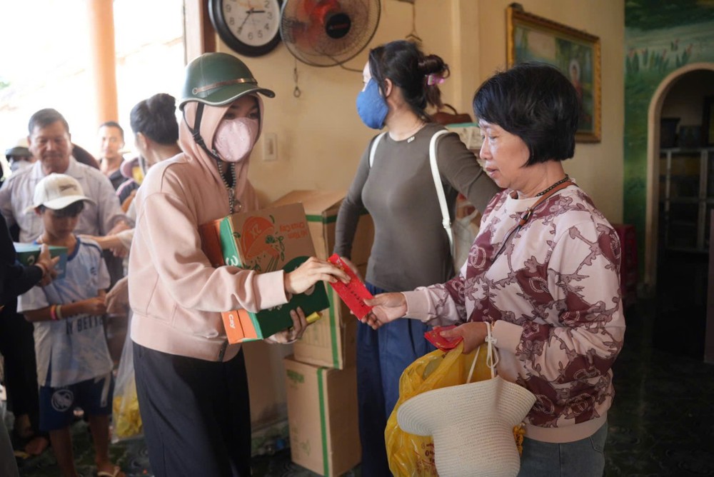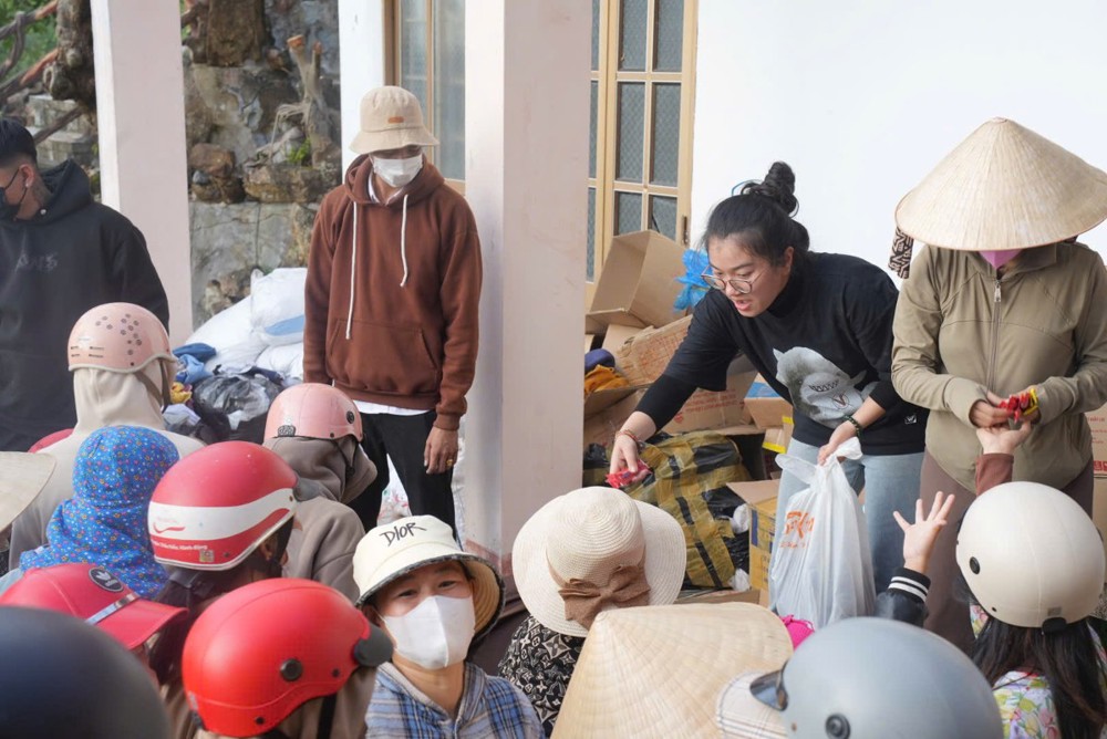 Trong ngày hôm nay (7/12) đoàn đã trao 750 phần quà và 1.000 đòn bánh tét (35 triệu đồng) đến các hộ dân bị thiệt hại nặng do bão lũ. Mỗi phần quà trị giá 800.000 đồng, bao gồm 10kg gạo, một thùng mì, một chai nước tương Tam Thế Tử, một chai nước mắm Nam Ngư, một chai dầu ăn, một phần quần áo các loại, một phần đồ dùng cá nhân (kem đánh răng, bàn chảy đánh răng, xà bông giặt đồ), một phần thuốc uống (thuốc cảm, ho, sổ mũi, 1 chai dầu gió), một lốc nước suối 24 chai, một phần bánh, một bịch khô và bao thư 200 nghìn đồng.