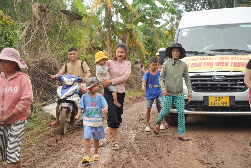 Liền sau đó, đoàn tiếp tục hành trình trao gửi yêu thương tại ba điểm chịu ảnh hưởng nặng nề: Điểm thứ nhất tại thôn Vinh Ba, xã Hòa Thịnh; Điểm thứ hai tại khu phố Đông Thạnh, phường Đông Hòa; Điểm thứ ba thôn Phú Mỹ, phường Song Cầu (tỉnh Đắk Lắk).
