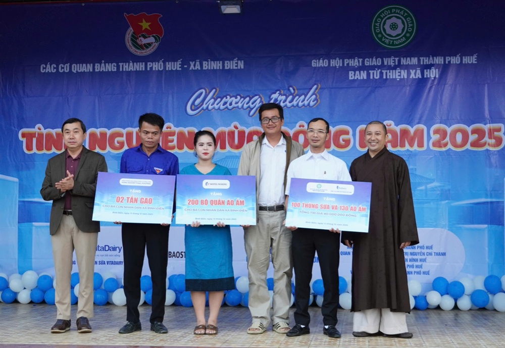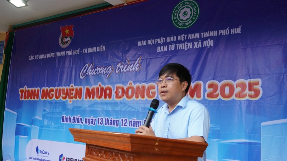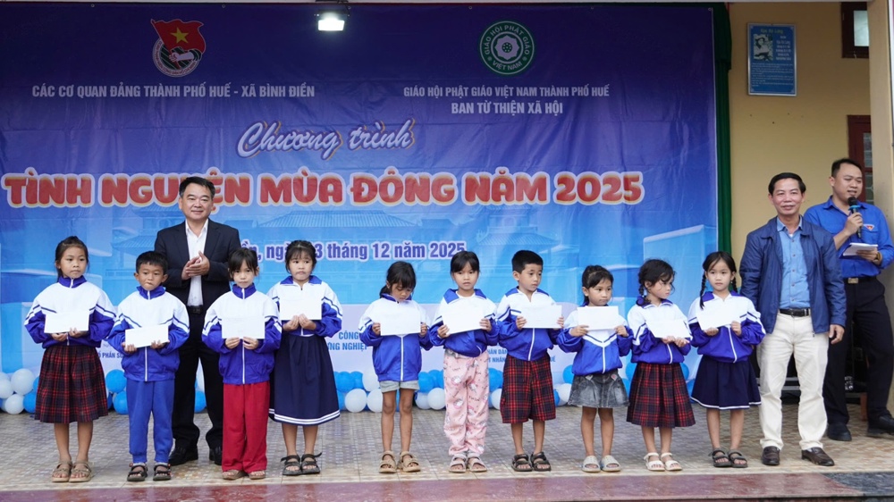 Chiều ngày 13/12/2025, tại Trường Tiểu học Hồng Tiến, xã Bình Điền, Ban Thường vụ Đoàn các cơ quan Đảng thành phố đã chủ trì, phối hợp cùng Ban Từ thiện xã hội Giáo hội Phật giáo Việt Nam thành phố Huế và Ban Thường vụ Đoàn xã Bình Điền tổ chức Chương trình “Tình nguyện mùa Đông” năm 2025. Chương trình được triển khai nhằm phát huy tinh thần xung kích, tình nguyện của đoàn viên thanh niên, lan tỏa tinh thần từ bi của Phật giáo, kịp thời sẻ chia và hỗ trợ bà con nhân dân, thiếu nhi có hoàn cảnh khó khăn tại xã Bình Điền trong mùa đông năm 2025.