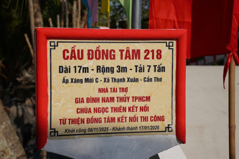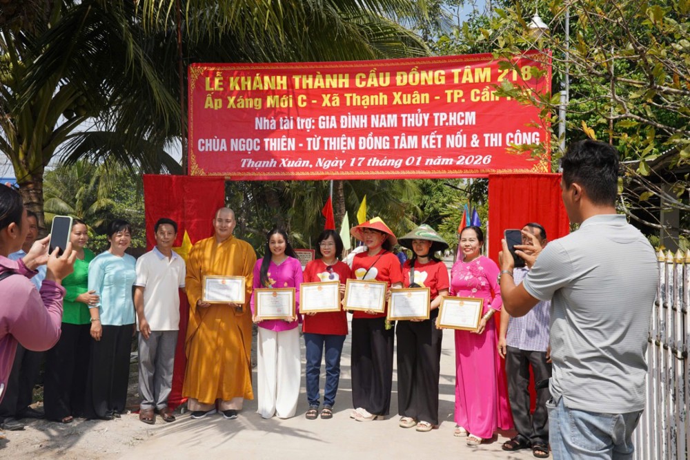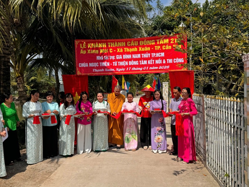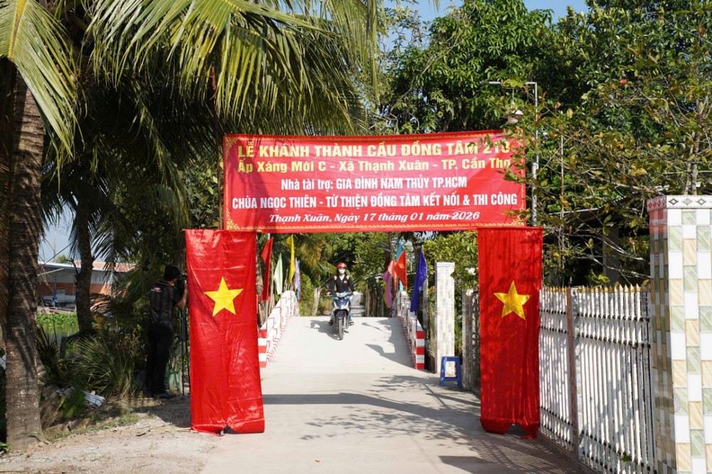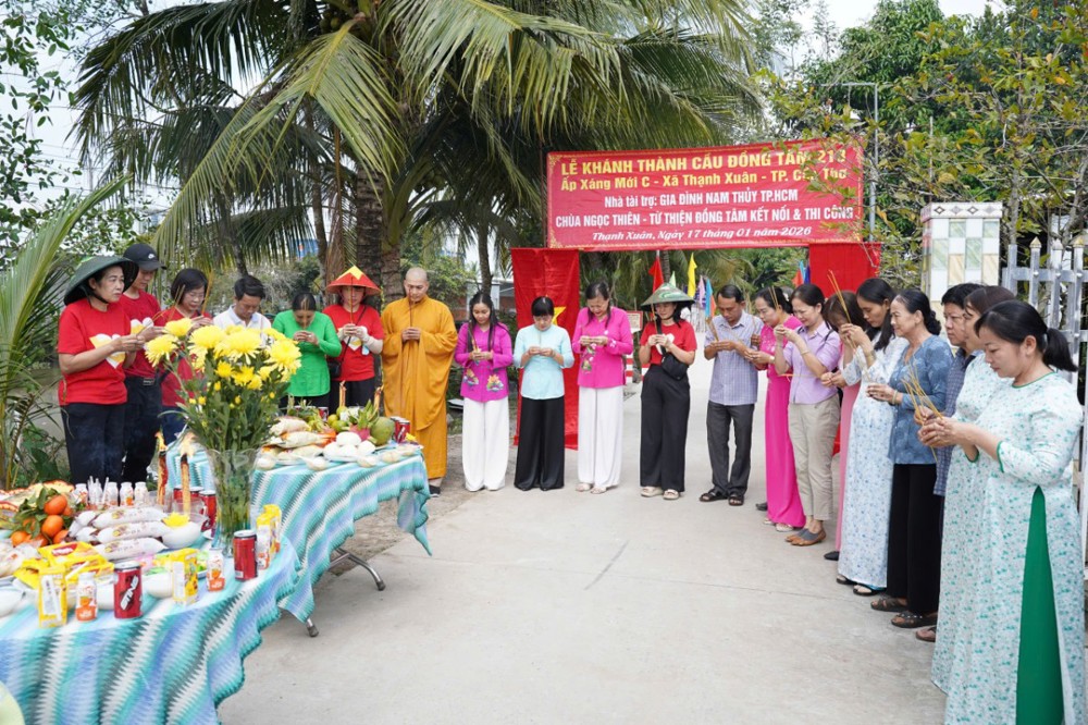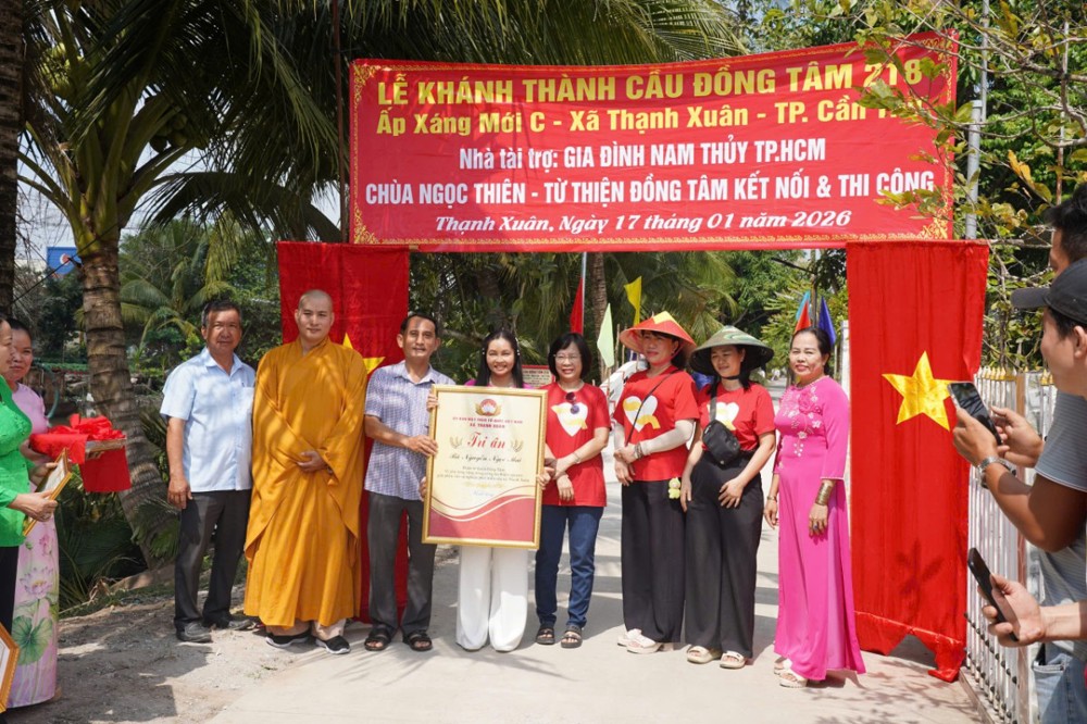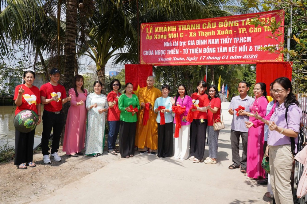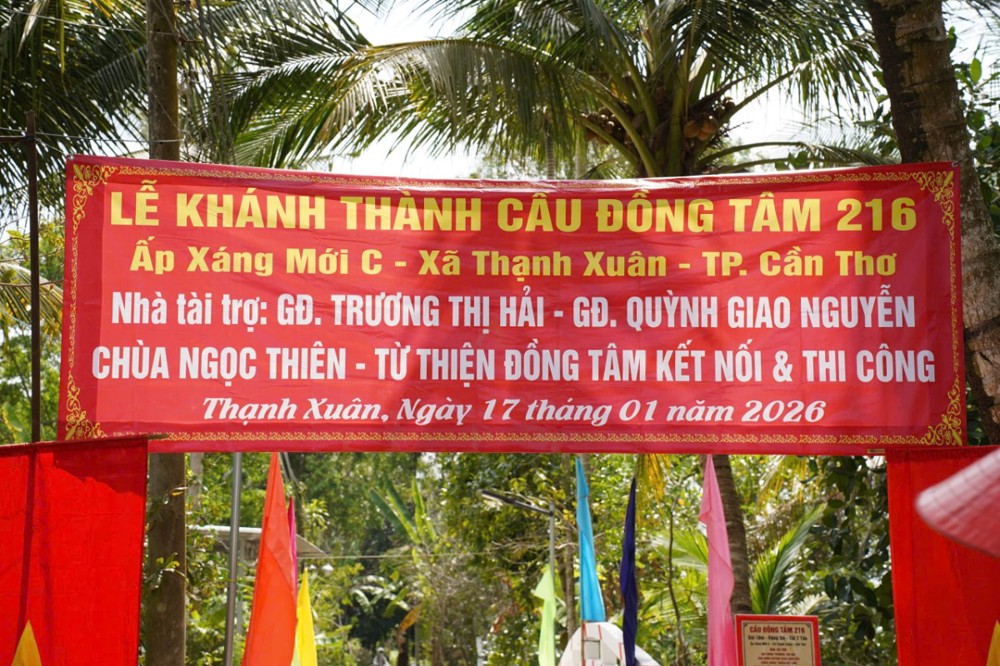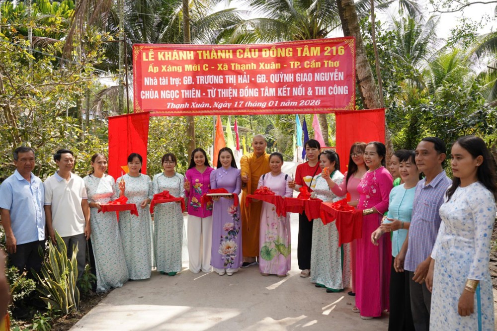PSO - Ngày 17/01/2026 (nhằm ngày 29/11 năm Ất Tỵ), tại ấp Xáng Mới C, xã Thạnh Xuân, TP. Cần Thơ, Ban Từ thiện – Xã hội GHPGVN TP. Cần Thơ phối hợp cùng Hội Từ thiện Đồng Tâm (TP.HCM), quý mạnh thường quân và chính quyền địa phương long trọng tổ chức lễ khánh thành cầu Đồng Tâm số 218 và 216.