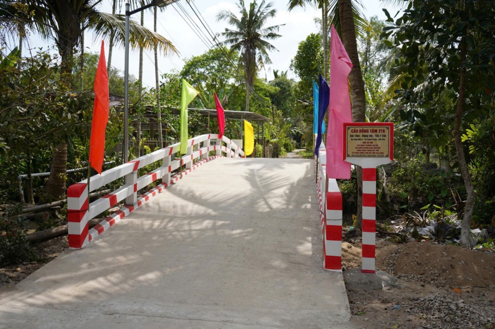 Trong không khí hân hoan và phấn khởi, Đại đức Thích Phước Thuận cùng đại diện chính quyền và nhà tài trợ đã thực hiện nghi thức cắt băng khánh thành, chính thức đưa hai cây cầu vào sử dụng. Việc hoàn thành và đưa vào hoạt động cầu Đồng Tâm 218 và 216 không chỉ góp phần cải thiện diện mạo nông thôn mới tại xã Thạnh Xuân, mà còn mang ý nghĩa nhân văn sâu sắc, kết nối những nhịp cầu yêu thương, tạo động lực cho người dân phát triển kinh tế và ổn định cuộc sống.