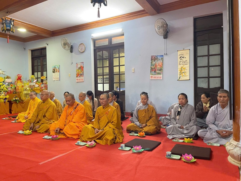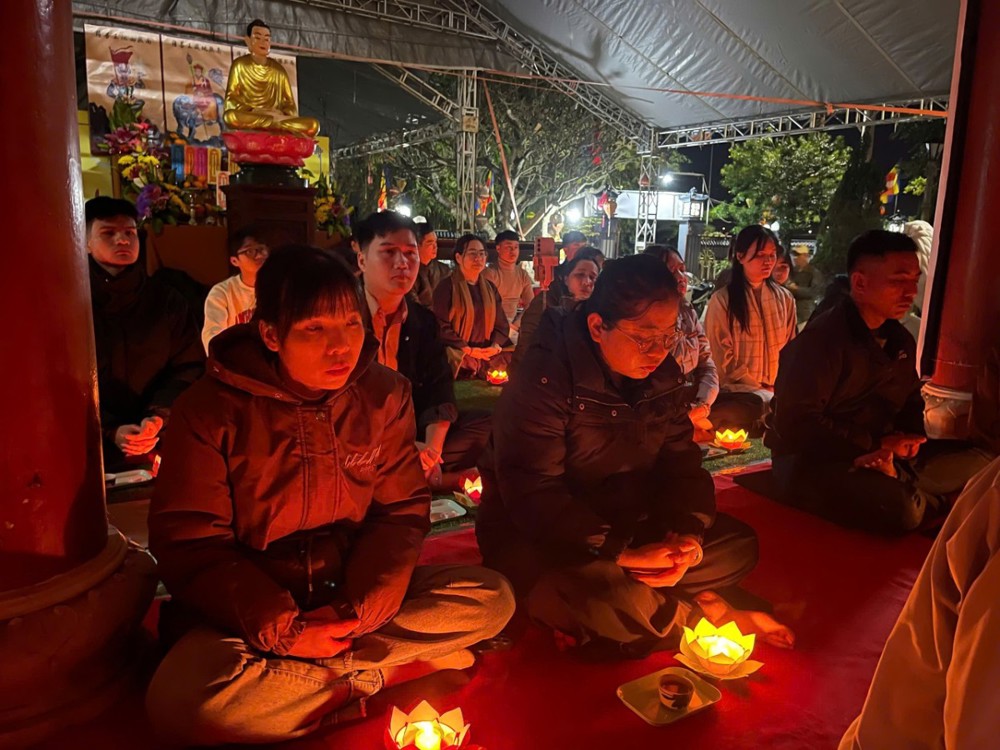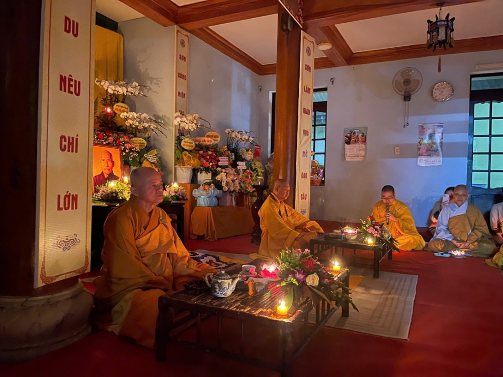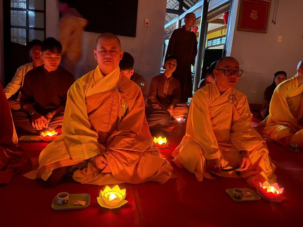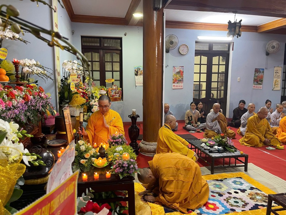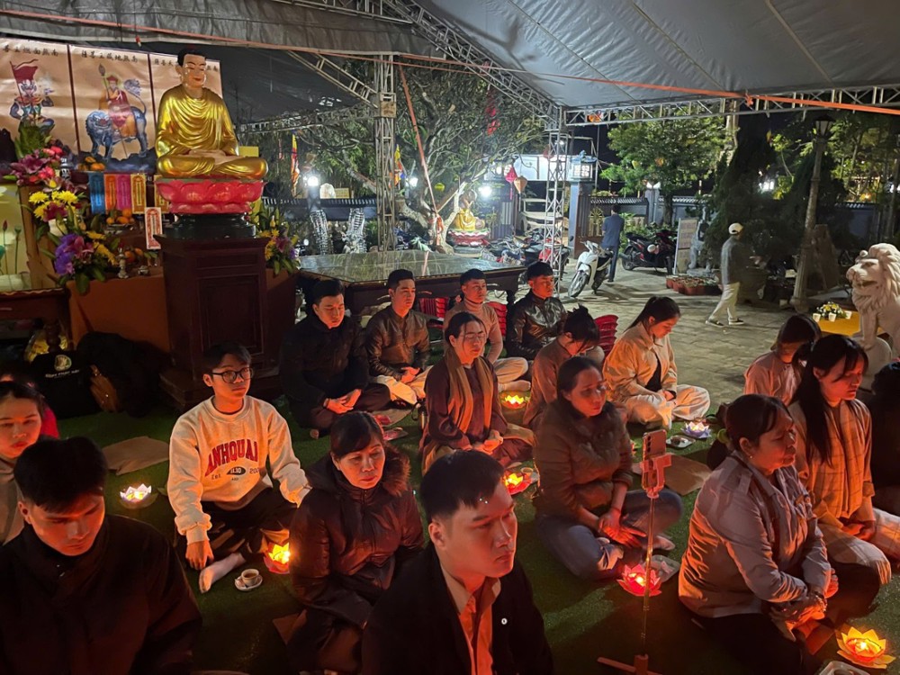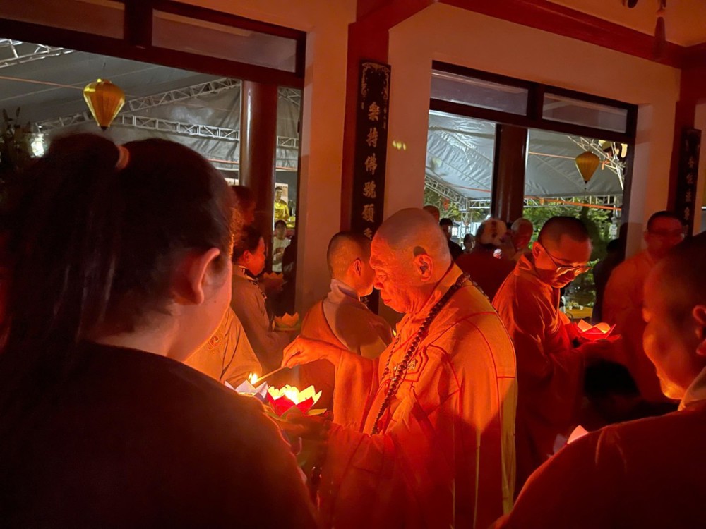 Môn đồ đệ tử cung đón Hòa thượng Thích Từ Nghiêm - Ủy viên HĐTS, Trưởng ban trị sự GHPGVN Tp. Đà Nẵng cùng chư tôn thiền Đức Tăng – Ni trụ trì và đạo tràng phật tử chùa An Lac, Pháp Hội, Tp. Đà Nẵng đồng về tham dự đêm đốt nến tưởng niệm.
