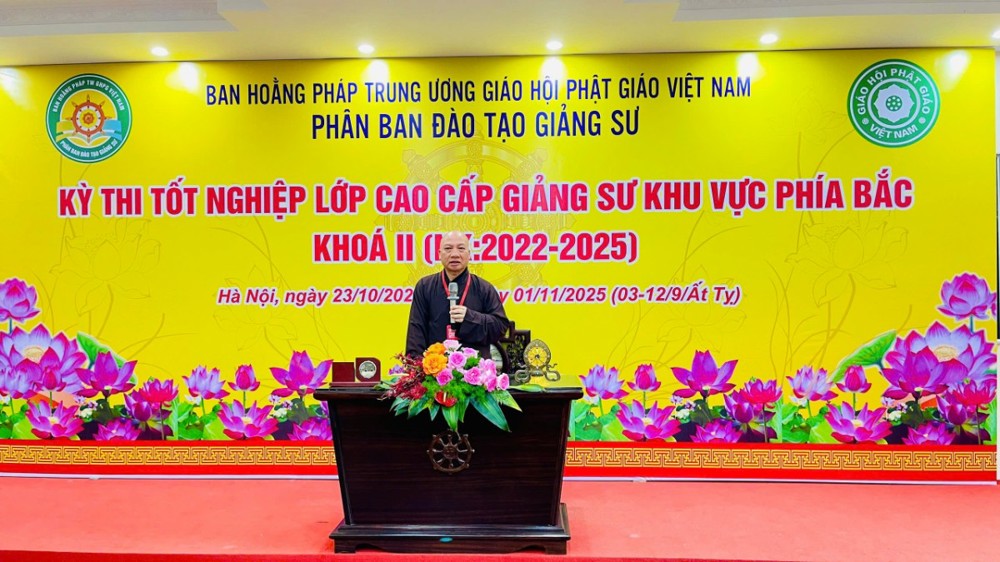 Kết thúc kỳ thi, trong phần đạo từ, TT. Thích Chiếu Tuệ – Trưởng ban Điều hành Lớp Cao cấp Giảng sư khu vực phía Bắc – tán dương tinh thần nỗ lực học tập, tu tập và thuyết giảng của toàn thể Tăng Ni giảng sinh. Thượng tọa nhấn mạnh: “Trên bước đường thành công không có dấu chân của kẻ lười biếng. Người giảng sư chân chính không chỉ thấu triệt giáo pháp, mà còn lấy tâm Từ Bi làm nền tảng, lấy Trí Tuệ làm ngọn đuốc soi đường, hành trang hoằng pháp chính là Giới – Định – Tuệ và nguyện lực dấn thân vì lợi ích chúng sinh.”