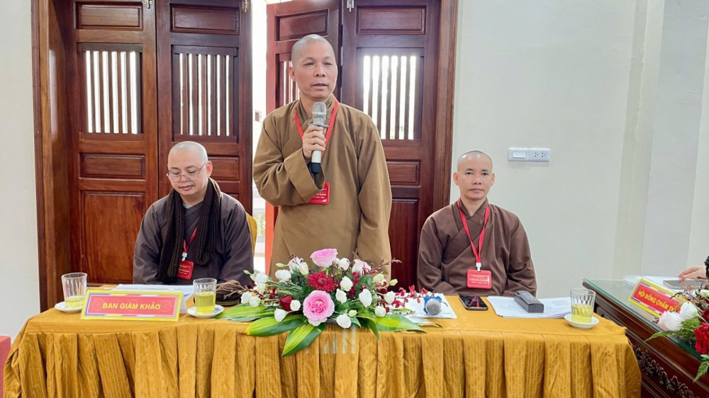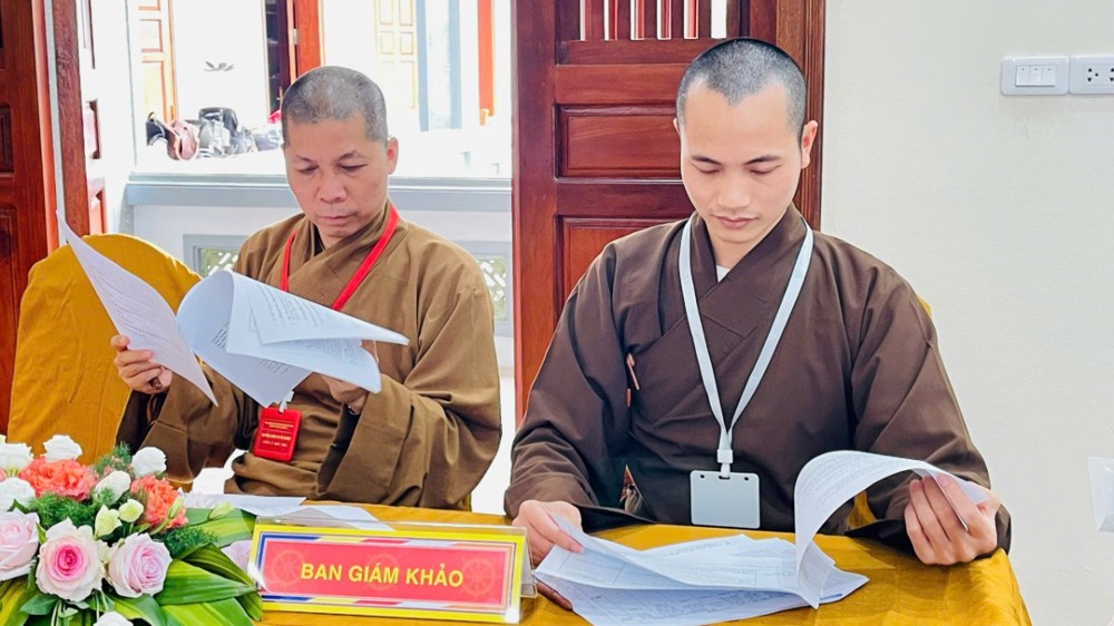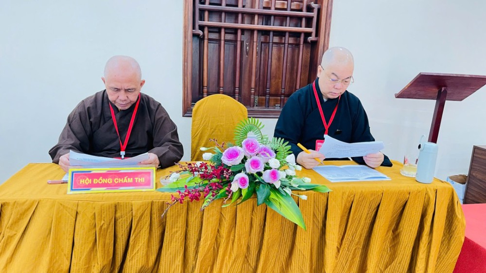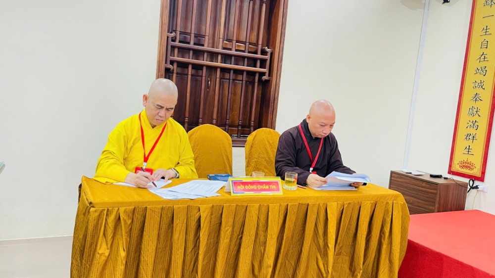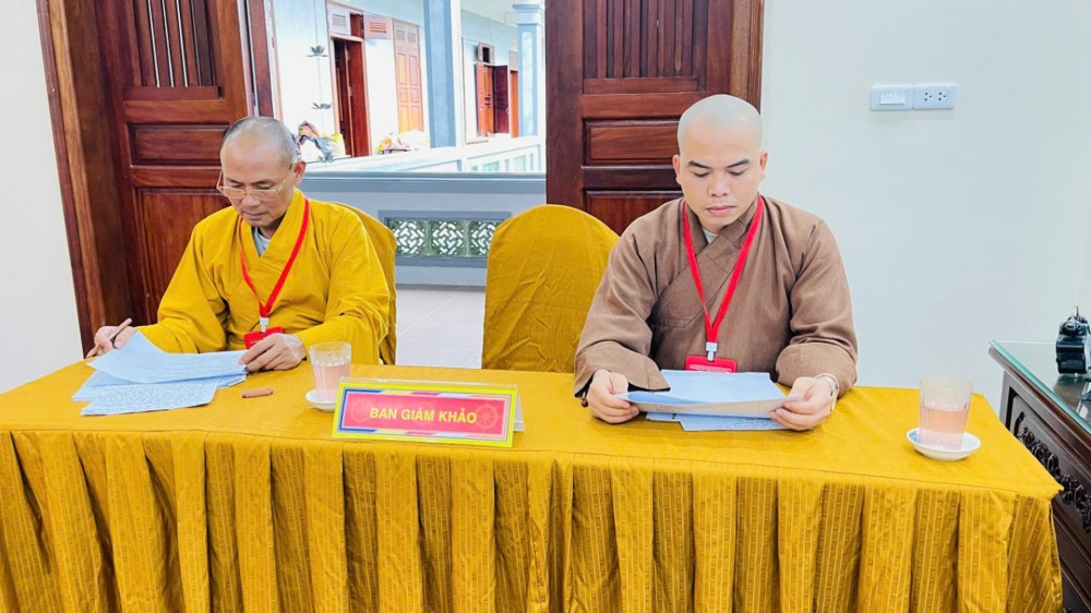 Ban Giám khảo kỳ thi gồm: TT. Thích Chiếu Tuệ – Ủy viên Hội đồng Trị sự, Phó Trưởng ban Thường trực Ban Hoằng pháp TW, Trưởng ban Điều hành lớp Cao cấp Giảng sư khu vực phía Bắc; TT. Thích Tâm Hoan, TT. Thích Tâm Thuần, TT. Thích Đức Lợi, TT. Thích Thiện Hạnh, TT. Thích Giác Minh, TT. Thích Thanh Phương, TT. Thích Trí Thuần và TT. Thích Thanh Hòa cùng chư Tôn đức Văn phòng Ban Điều hành đồng tham dự.