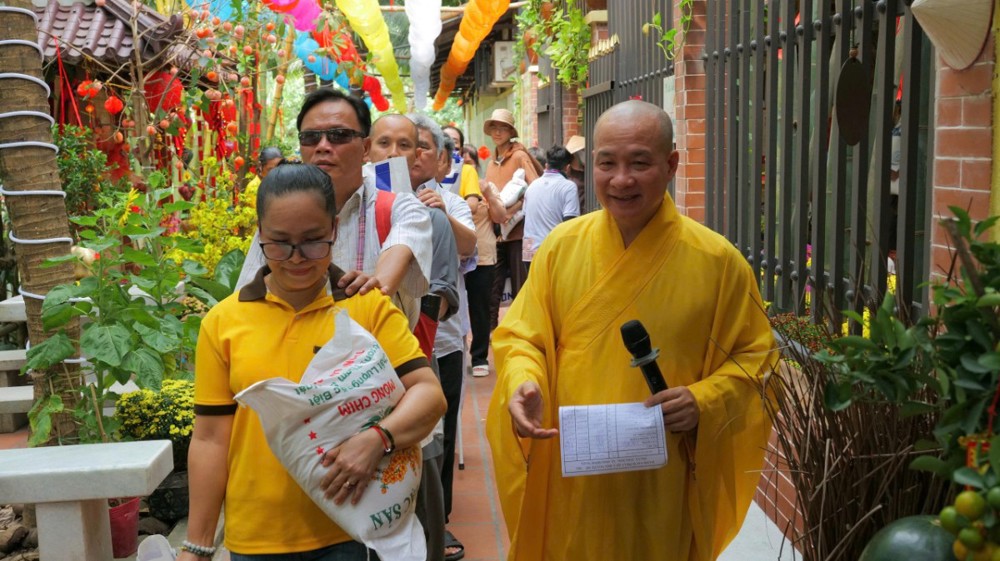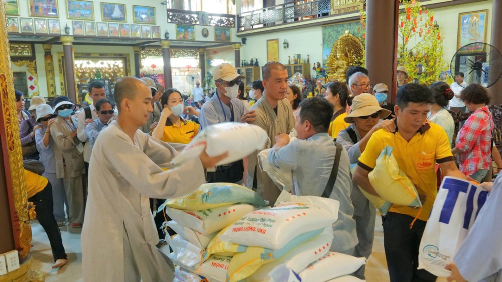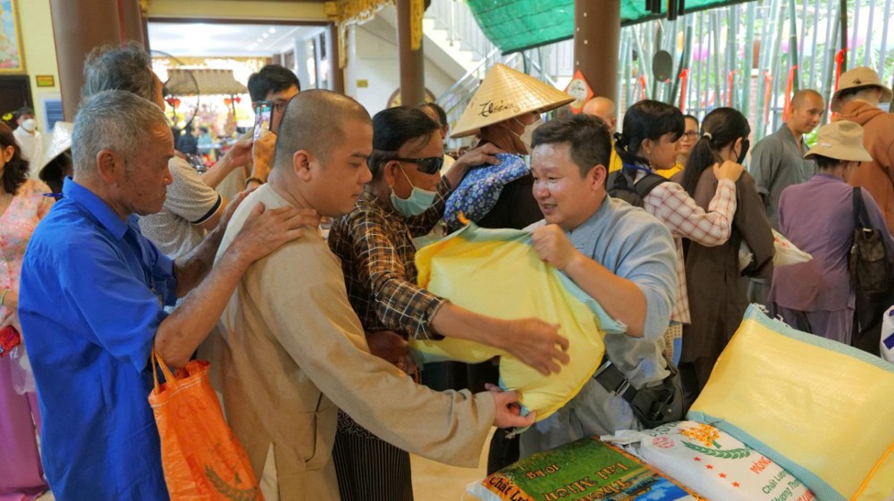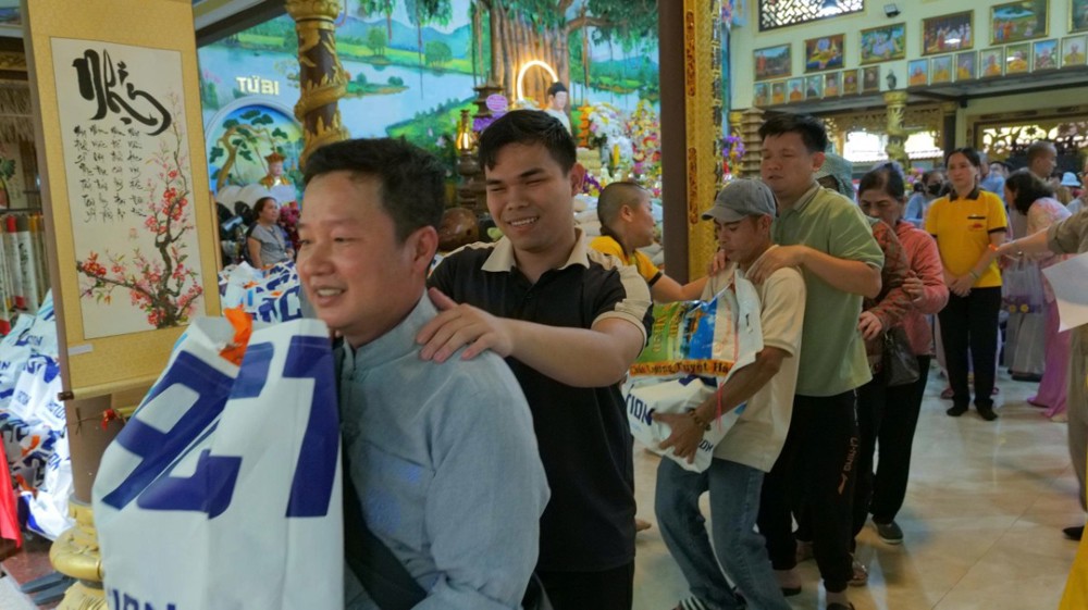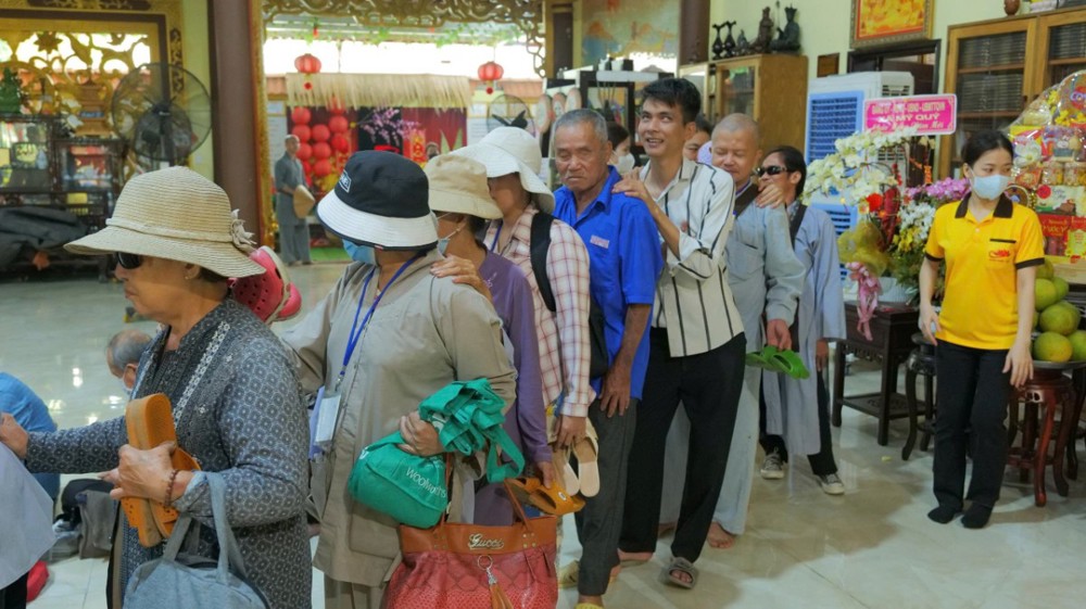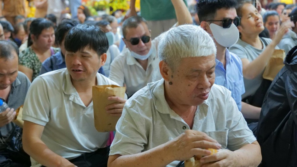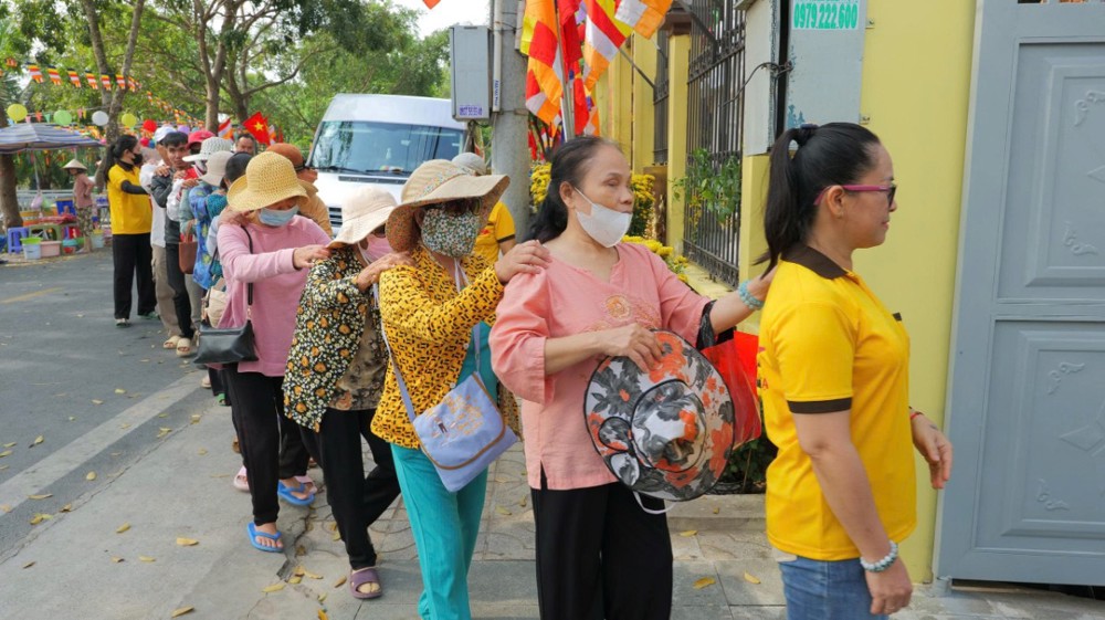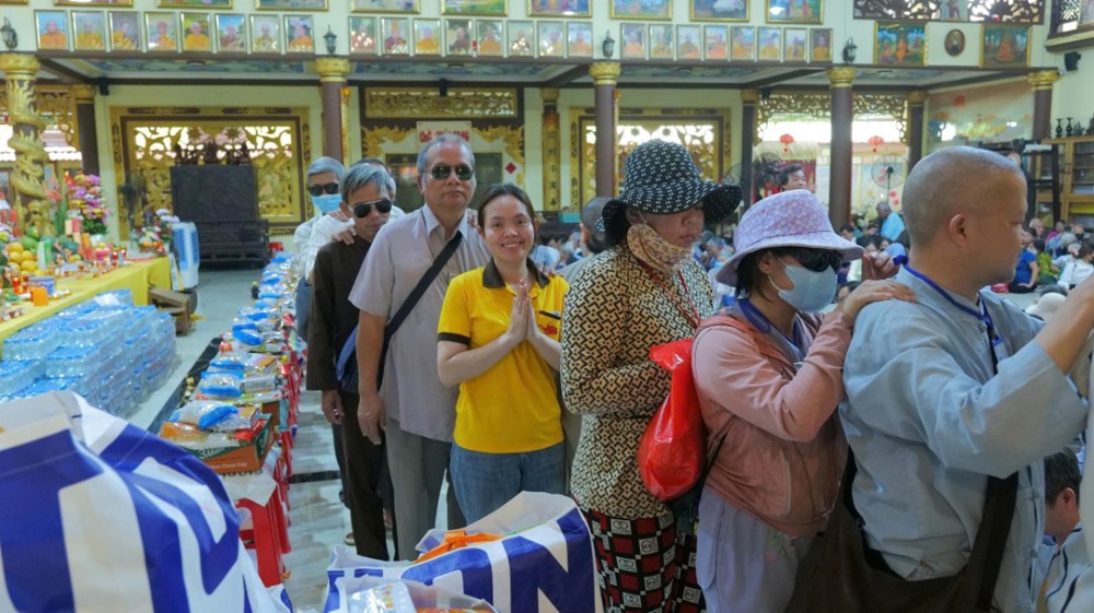 Chùa cũng chu đáo chuẩn bị cơm và nước uống để bà con thuận tiện dùng trên đường trở về. Hình ảnh từng hàng người nương nhau tiến bước, trân trọng đón nhận bao thư và phần quà yêu thương đã để lại nhiều xúc động. Dẫu cuộc sống còn nhiều gian nan, trên gương mặt bà con vẫn ánh lên niềm vui và hy vọng.
