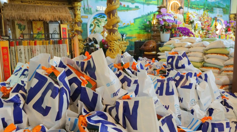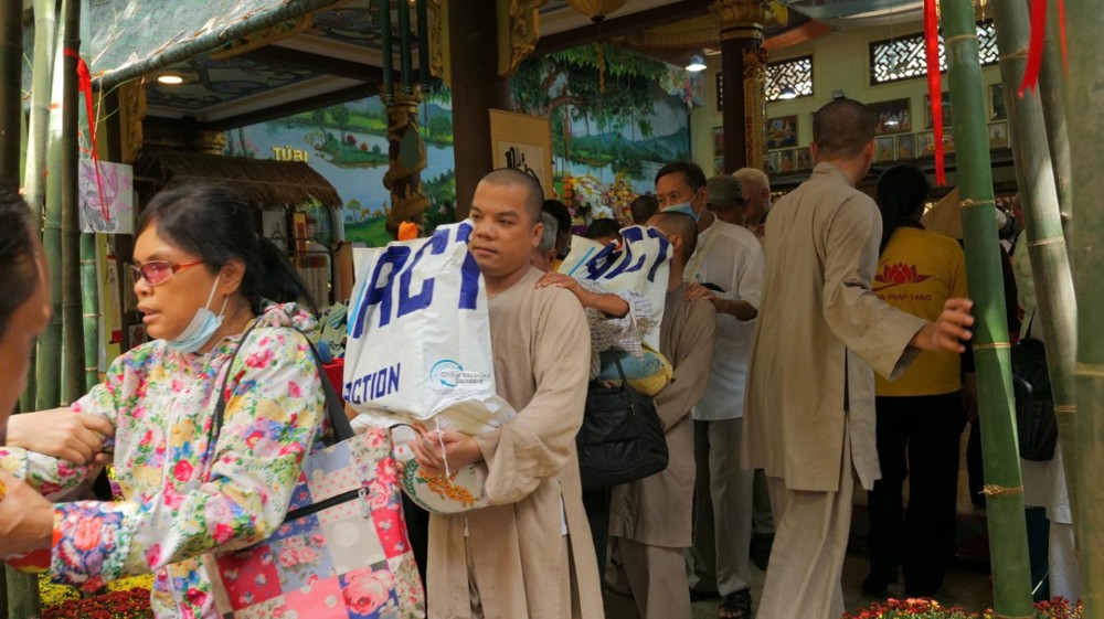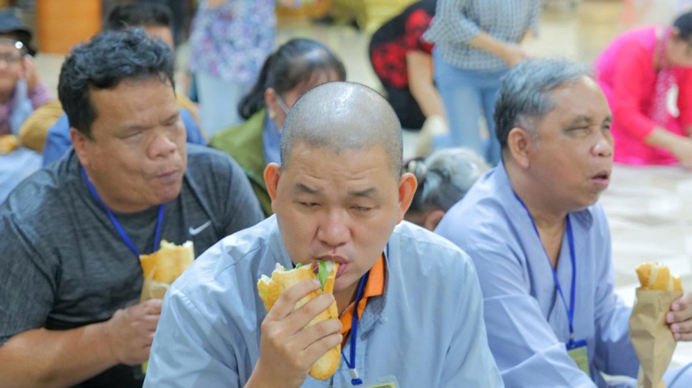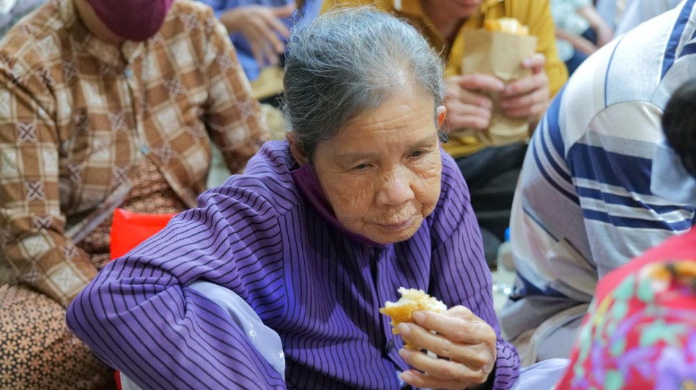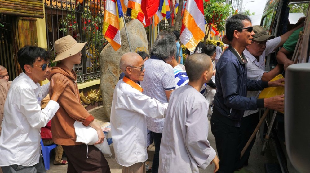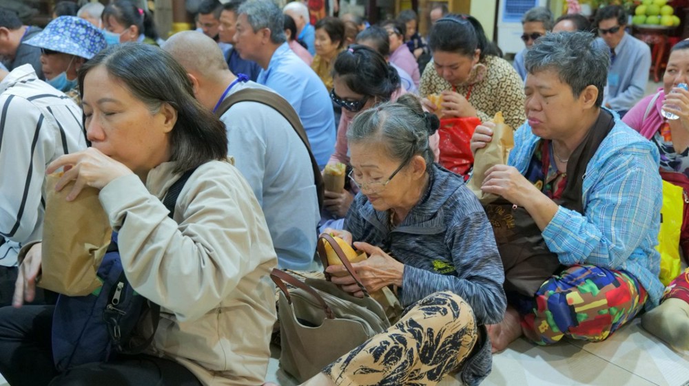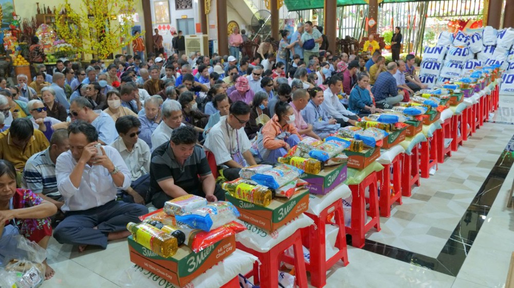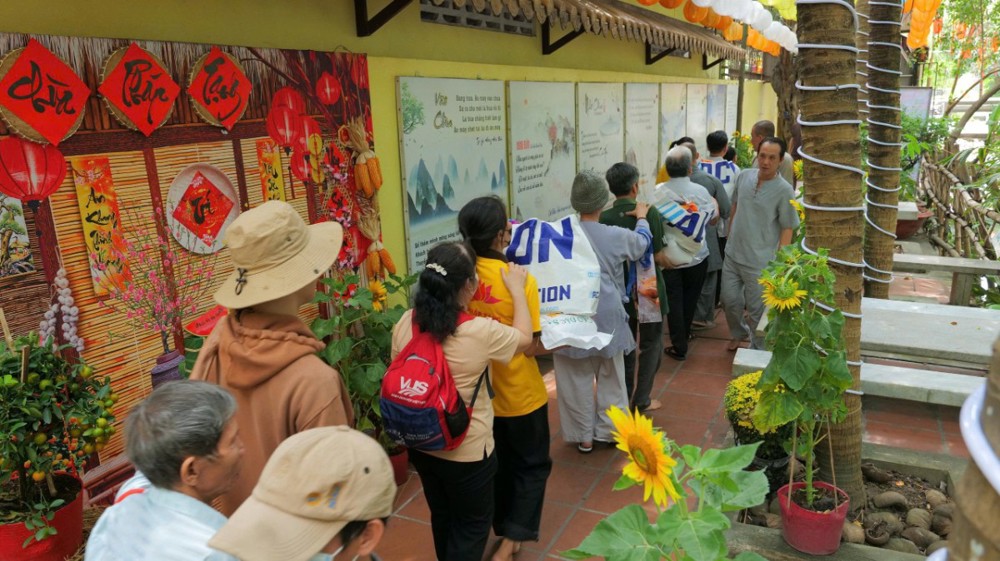 Chùa cũng chu đáo chuẩn bị cơm và nước uống để bà con thuận tiện dùng trên đường trở về. Hình ảnh từng hàng người nương nhau tiến bước, trân trọng đón nhận bao thư và phần quà yêu thương đã để lại nhiều xúc động. Dẫu cuộc sống còn nhiều gian nan, trên gương mặt bà con vẫn ánh lên niềm vui và hy vọng.