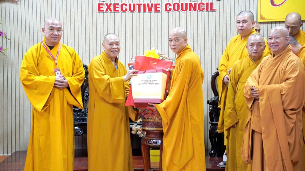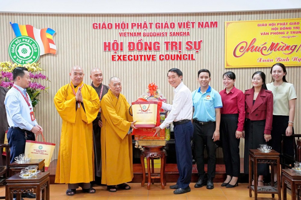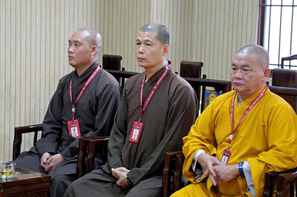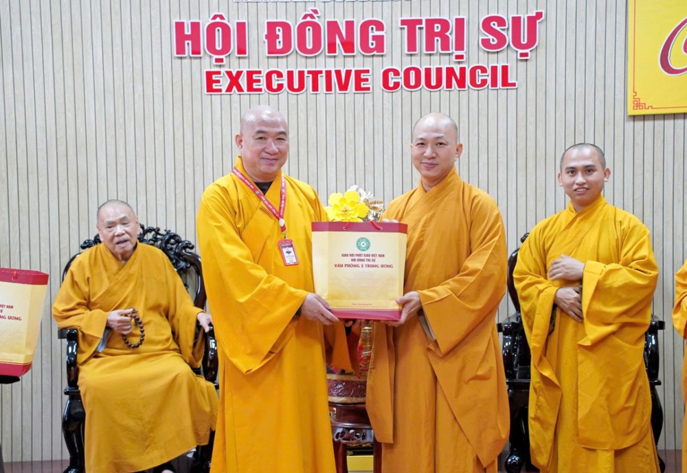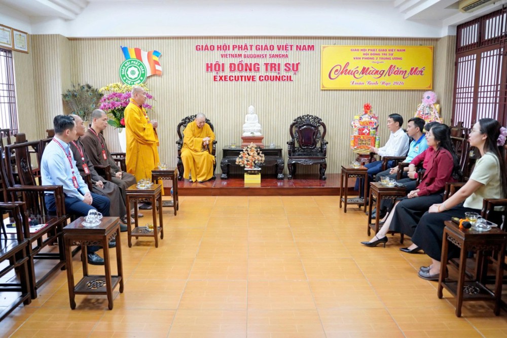 Đón tiếp phái đoàn có Trưởng lão Hòa thượng Thích Thiện Pháp – Ủy viên Thường trực Hội đồng Chứng minh, Phó Chủ tịch Thường trực Hội đồng Trị sự; Thượng tọa Thích Phước Nguyên – Phó Tổng Thư ký, Chánh Văn phòng II Trung ương GHPGVN; cùng chư Tôn đức Phó Văn phòng và nhân viên Văn phòng II Trung ương GHPGVN.