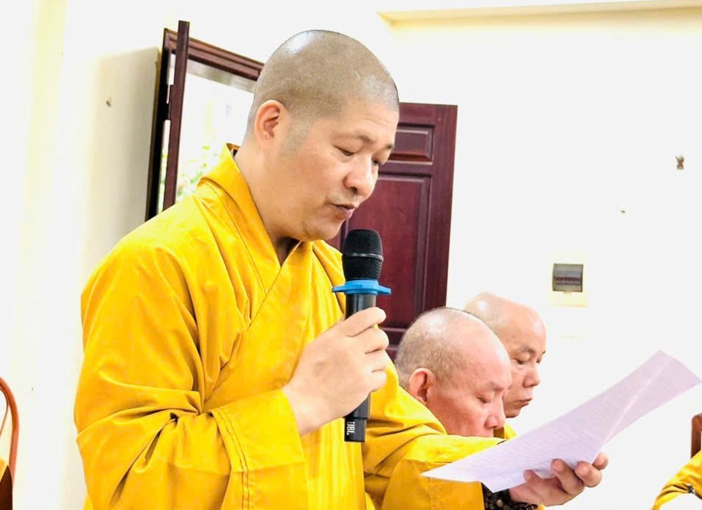 Đại đức Thích Minh Hải báo cáo sơ lược công tác Phật sự