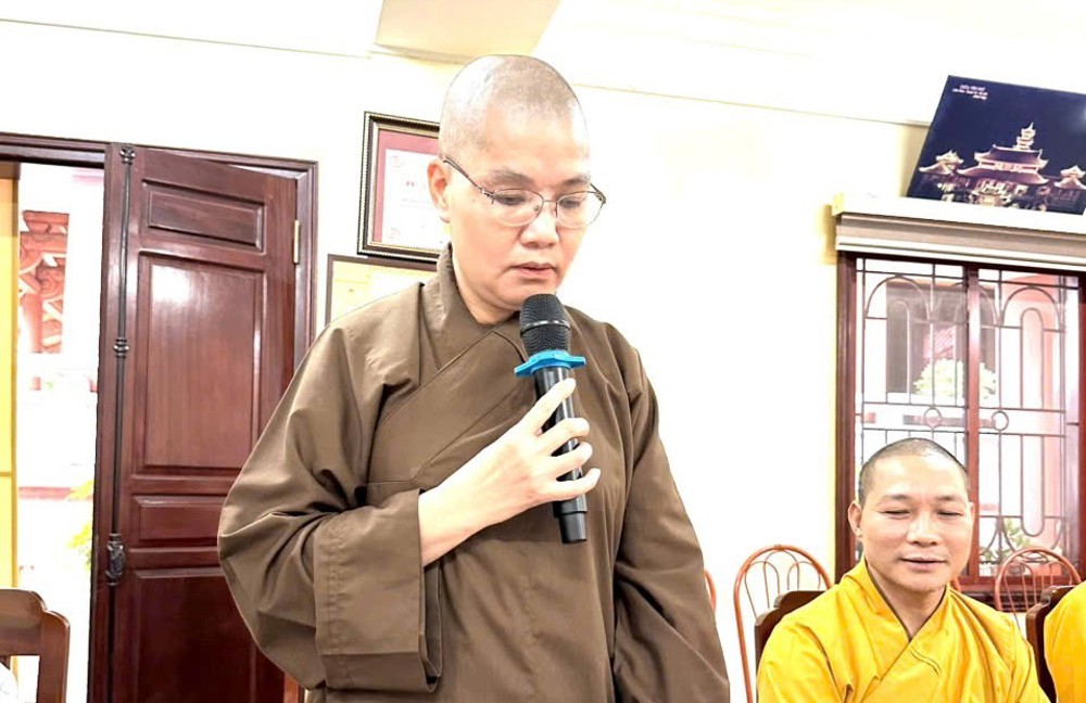 Sư cô Giác Ân – Ủy viên Thư ký, Phó Chánh Văn phòng Thường trực báo cáo tình hình tài chính của Ban, cho biết hiện đang gặp nhiều khó khăn sau khi tổ chức Đại lễ Vesak và các sự kiện lớn, nhiều khoản công nợ cần sớm có giải pháp xử lý.
