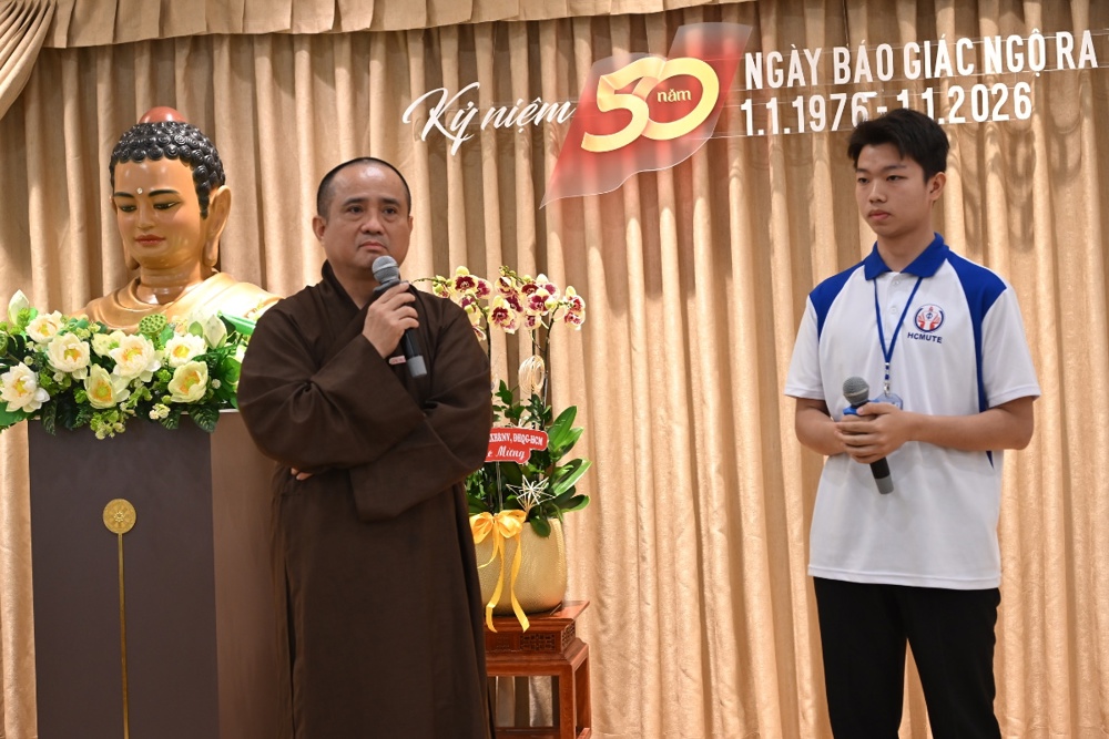 Đại diện Ban Tổ chức bày tỏ sự trân trọng trước nỗ lực của các em sinh viên. Chương trình không chỉ là sự hỗ trợ về vật chất mà còn là nơi hội tụ của những tâm nguyện cao đẹp vì sự nghiệp giáo dục và thế hệ trẻ. Những lời chia sẻ từ chư Tôn đức và các đại biểu đã thắp sáng thêm niềm tin cho 50 em sinh viên được đón nhận học bổng, là sự tiếp nối của yêu thương và trí tuệ. Các đại biểu kỳ vọng các em sinh viên sẽ biến lòng biết ơn thành hành động, nỗ lực học tập để trở thành công dân có ích cho xã hội.