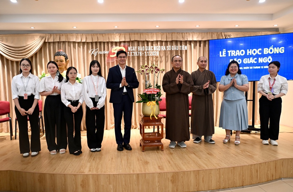 PSO - Nhân kỷ niệm 50 năm ngày Báo Giác Ngộ ra số đầu tiên, sáng ngày 30/12/2025, tại trụ sở Tòa soạn Báo Giác Ngộ (số 85 Nguyễn Đình Chiểu, phường Xuân Hòa, TP.HCM), Ban Biên tập tổ chức lễ trao tặng học bổng đến 50 em sinh viên có thành tích học tập và rèn luyện tốt đến từ 4 trường Đại học tại TP.HCM.