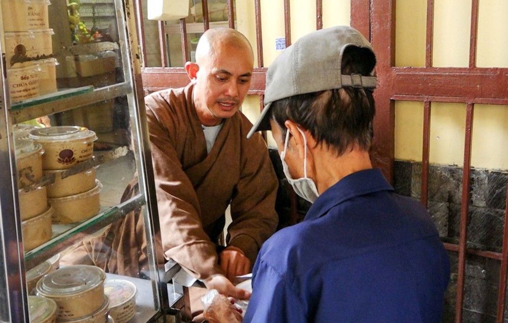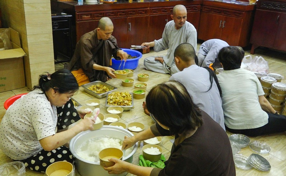 Được thành lập từ năm 2020, bếp ăn Từ Tâm đến nay đã duy trì hoạt động liên tục gần 5 năm. Mỗi buổi sáng, chư Tăng cùng các Phật tử tập trung tại gian bếp của chùa để chuẩn bị nguyên liệu, chế biến và đóng hộp các phần ăn. Thực đơn được thay đổi thường xuyên, bảo đảm đầy đủ dinh dưỡng, an toàn và phù hợp với điều kiện của người lao động nghèo.