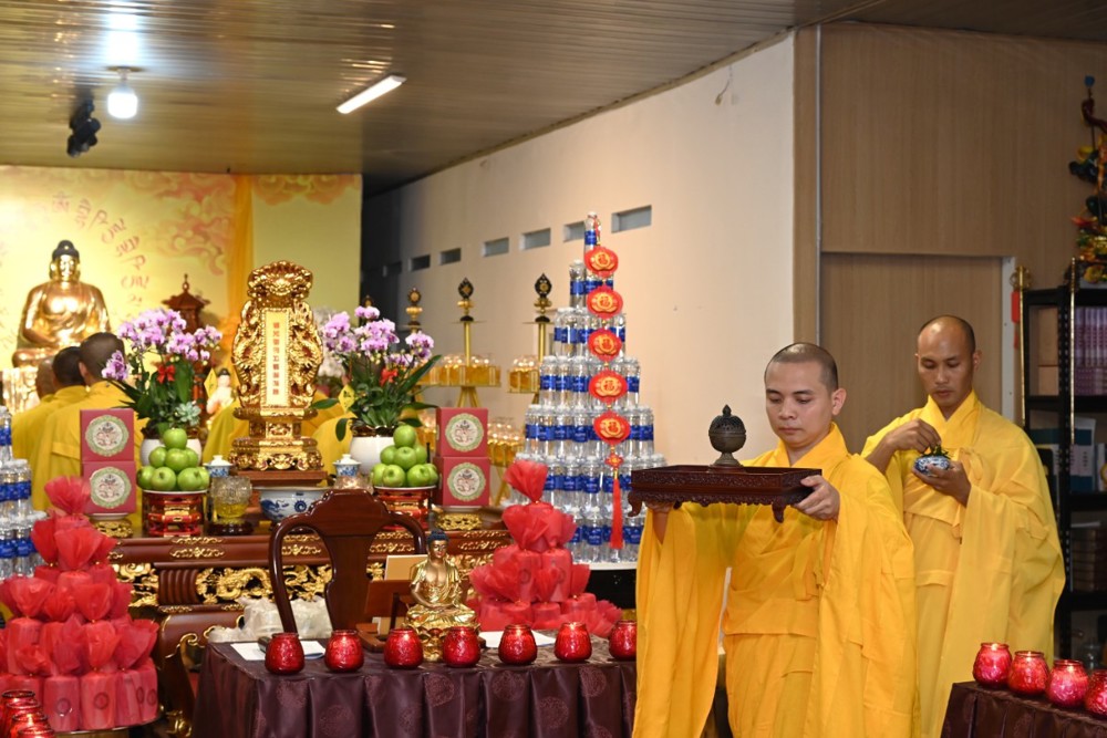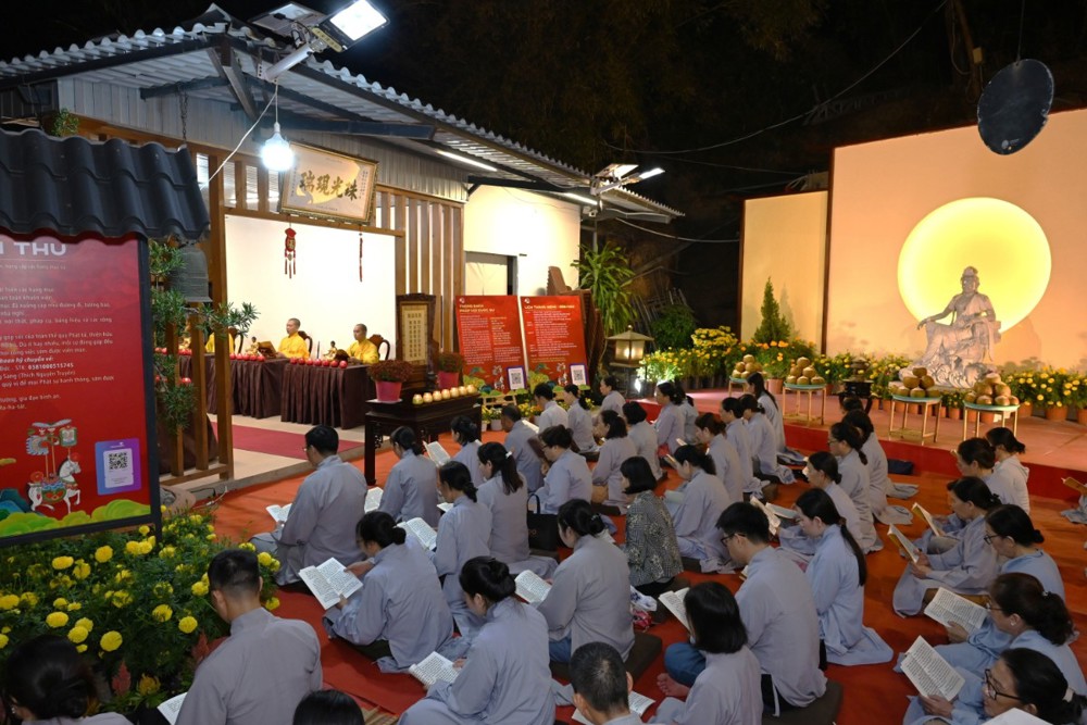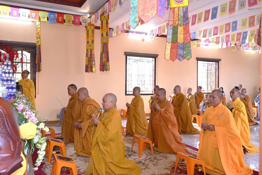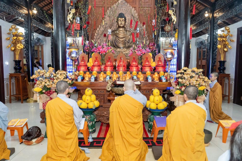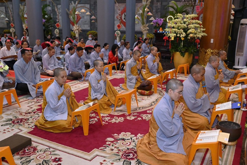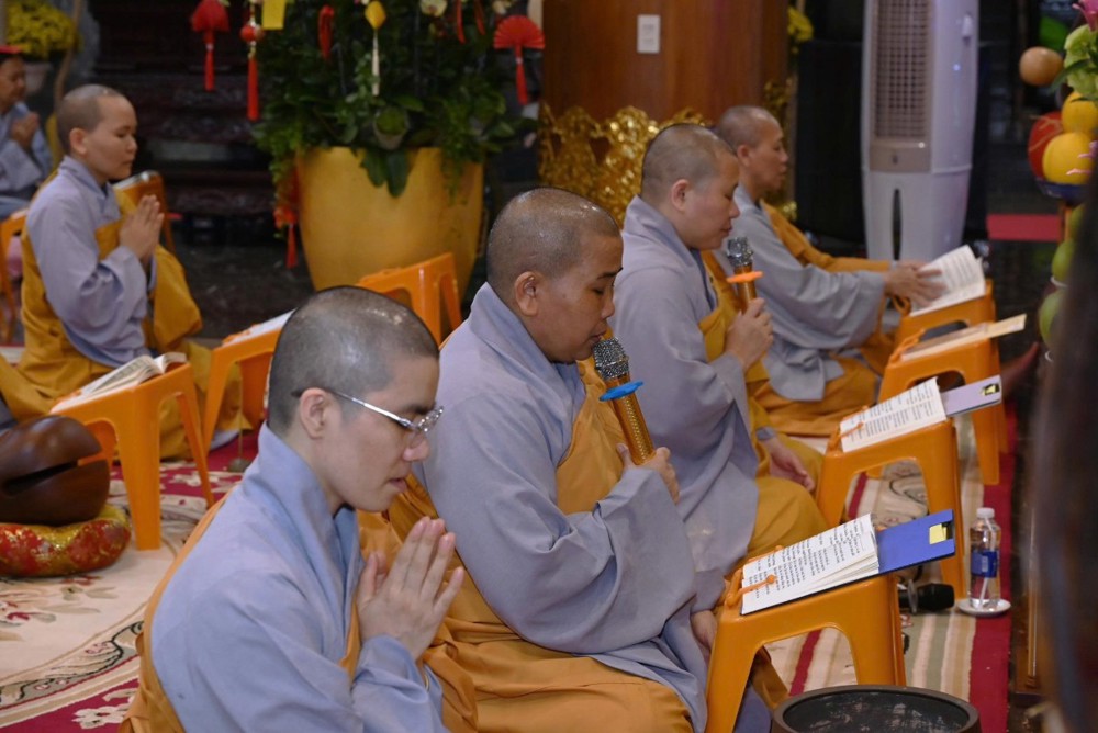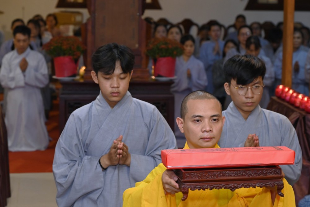 Sau ba hồi chuông trống Bát nhã vang lên trầm hùng, chư Tôn đức trụ trì các tự viện niêm hương bạch Phật, sái tịnh đàn tràng, cầu nguyện pháp hội được thành tựu viên mãn. Đại chúng đồng thanh trì tụng kinh Dược Sư, nhất tâm hướng nguyện cho Phật pháp trường tồn, đất nước thanh bình, nhân dân an cư lạc nghiệp.