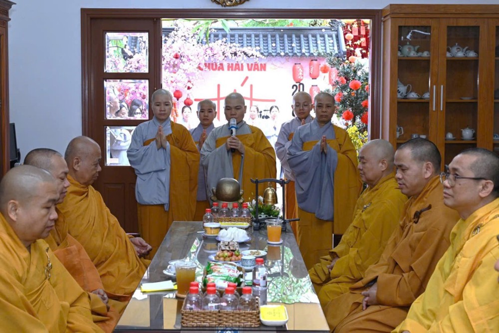 Tại chùa Hải Vân, Sư cô Thích Nữ Huệ Trí cung thỉnh chư Tôn đức Tăng Ni khai kinh Dược Sư, đồng thời thiết lễ trai tăng cầu an đầu năm mới.