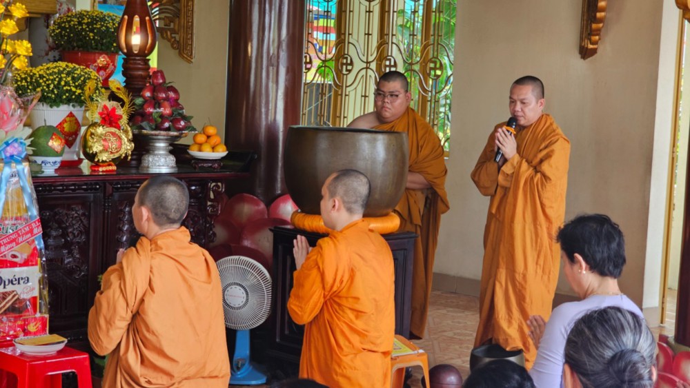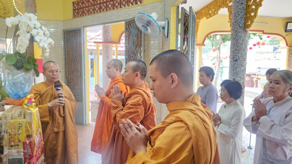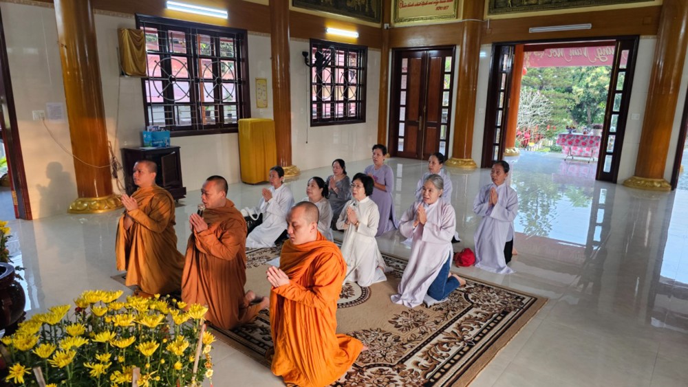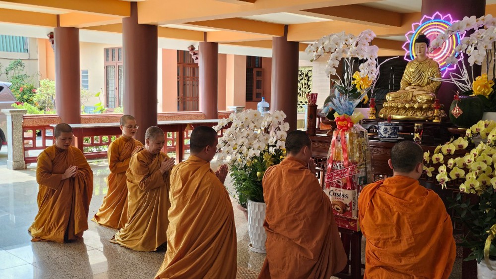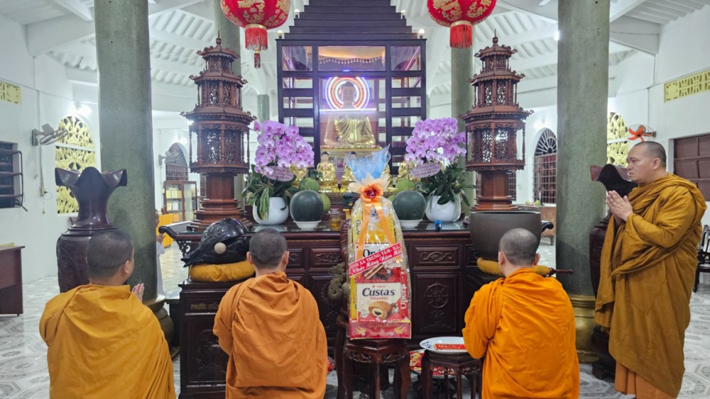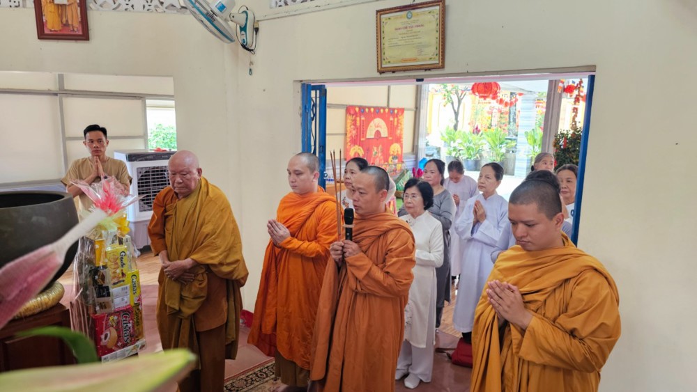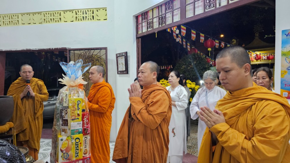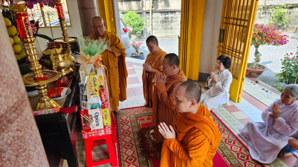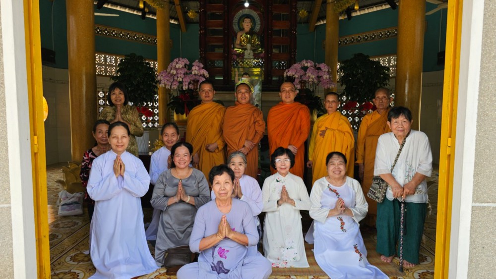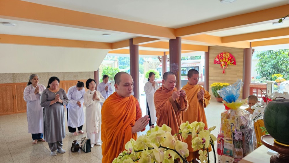 Đúng 4 giờ 30 phút, khi phố thị còn chìm trong tĩnh lặng, đoàn vân tập trước chánh điện, nhất tâm đảnh lễ Tam bảo, phát nguyện lên đường. Điểm dừng chân đầu tiên là Tịnh xá Ngọc Minh (phường Thủ Đức), nơi đại chúng thành kính dâng hương, vấn an chư Tôn đức Tăng và tác bạch cúng dường đầu xuân.