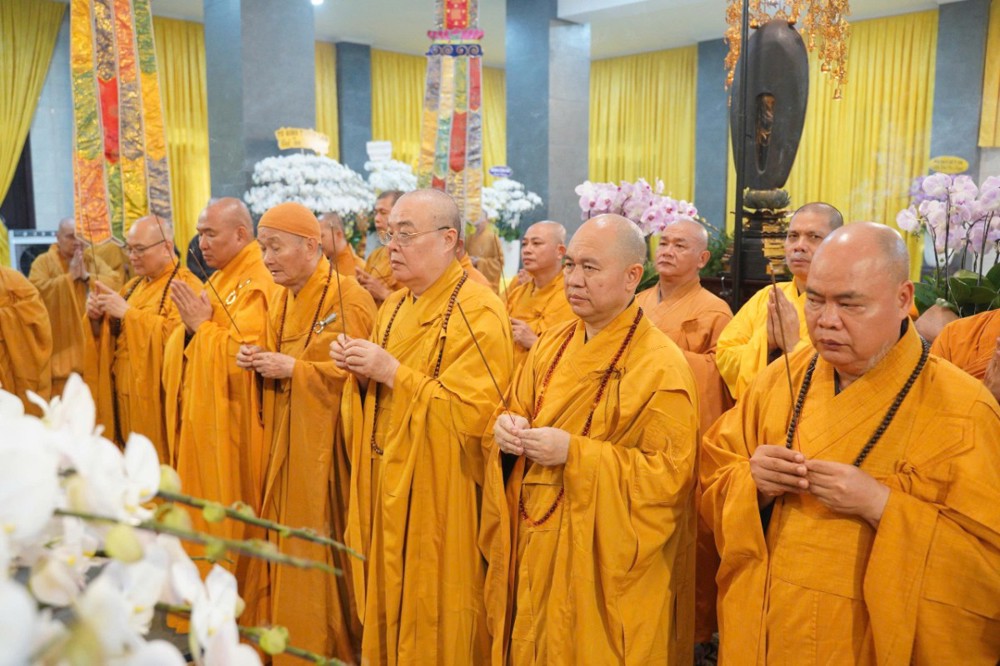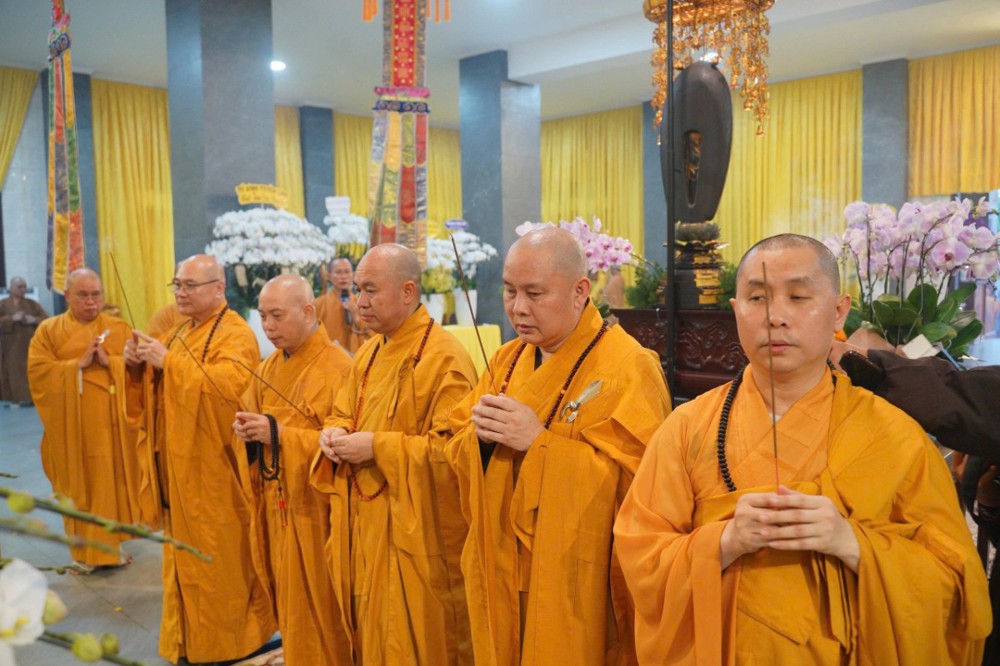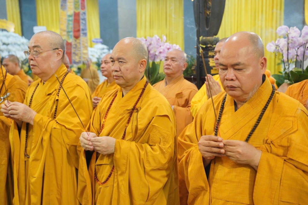 Tại Giác linh đường, chư Tôn đức trang nghiêm dâng hương tưởng niệm Giác linh Trưởng lão Hòa thượng, thành kính nguyện cầu Giác linh Ngài cao đăng Phật quốc. Toàn thể đại chúng đồng thanh niệm Phật, nhất tâm hồi hướng công đức, tưởng niệm sâu sắc bậc Trưởng lão khả kính - người đã trọn đời hiến dâng cho Đạo pháp và phụng sự Giáo hội.